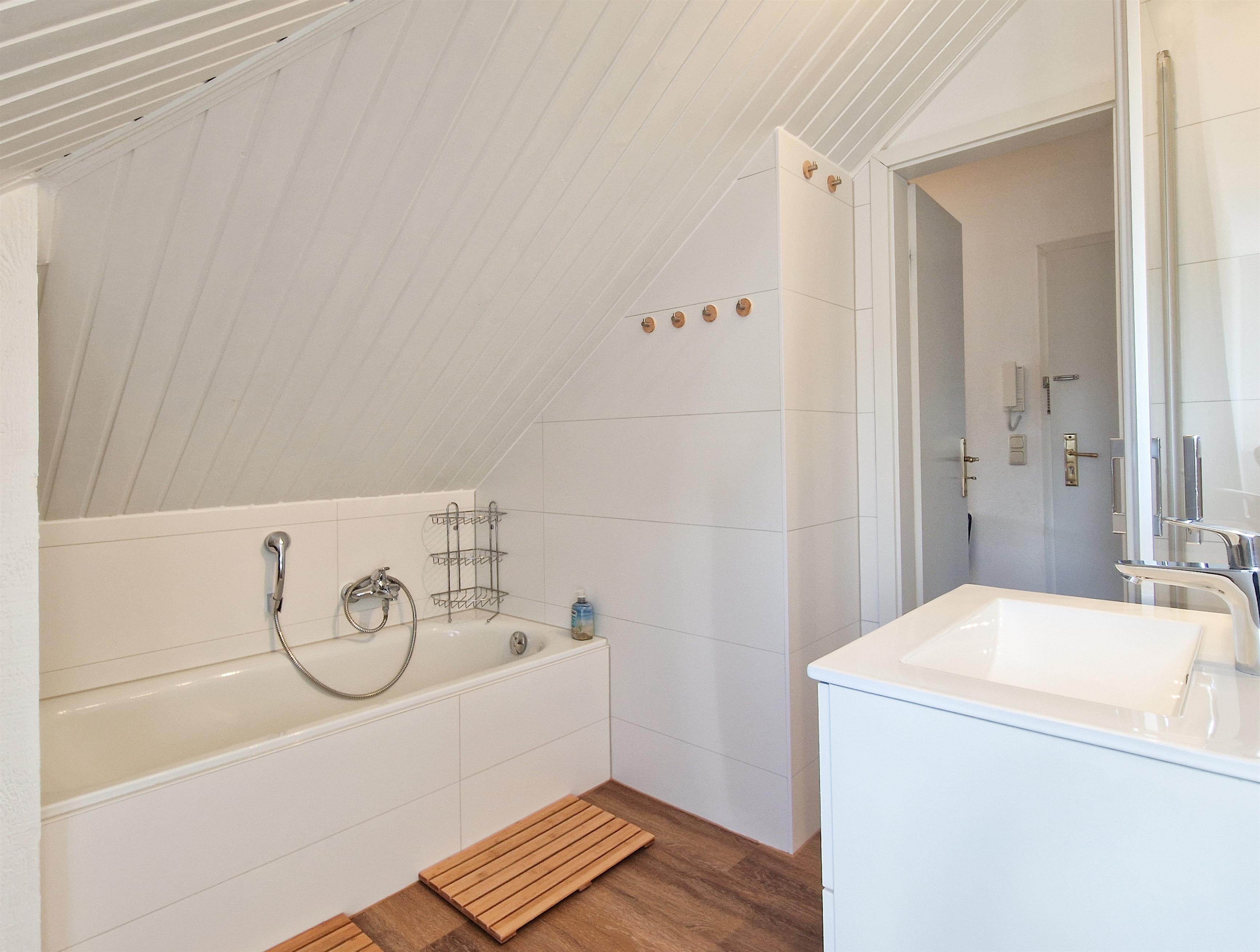 Dieses 45 qm große 2 Zimmer Appartment lädt mit seinem großem Drei-Ecks-Fenster im Wohnbereich und Meeresblick im Schlafzimmer zum Verweilen ein. Das Wohnzimmer ist mit einer modernen Couch und Flat TV möbliert. Die Mahlzeiten können die Gäste an einen großzügigen Tisch im Küchenbereich einnehmen. Die Küchenzeile mit Geschirrspüler, Backofen p.p ist offen im Wohnbereich integriert. Das Schlafzimmer verfügt über ein Doppelbett mit getrennten Matratzen (90x200), einen Schrank und einem kleinem Sitzbereich zum Nachsinnen. Vom Schlafzimmer aus können sie die Ostsee sehen. Das Bad verfügt über Duschbadewanne, Waschbecken und WC. Waschmaschine und Trockner sind im Haus vorhanden. Ein Pkw-Stellplatz befindet sich auf dem Grundstück und ist der Wohnung zugeordnet.
