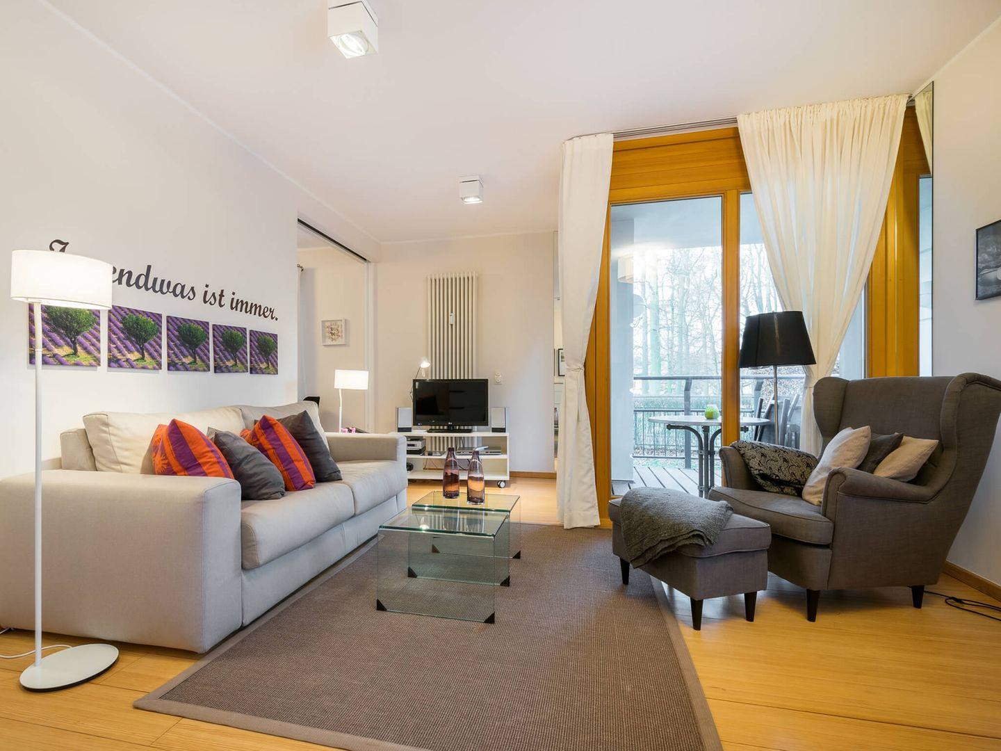 2-Zimmer-Wohnung mit Balkon, Bad mit Wanne, Küche mit Cerankochfeld, Backofen, Geschirrspüler und Mikrowelle, Sonstiges: LED-Fernseher, DVD-Player, Musikanlage, Nichtraucher, Haustiere nicht gestattet