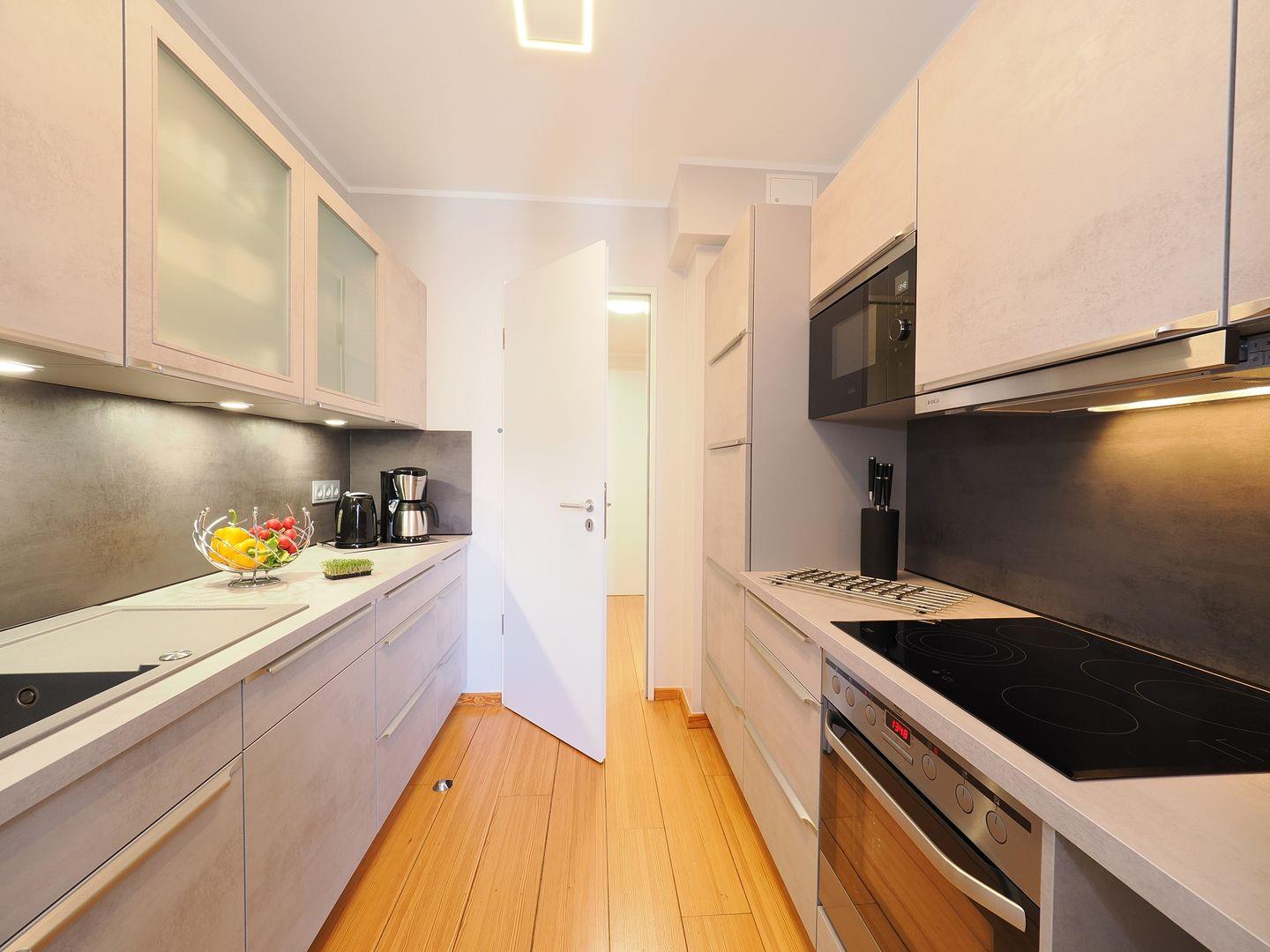 Wohnung mit Balkon, Bad mit Dusche und Regendusche, Küche mit Cerankochfeld, Backofen, Geschirrspüler und Mikrowelle, Sonstiges: LED-Fernseher, DVD-Player, Musikanlage, Nichtraucher, Haustiere nicht gestattet