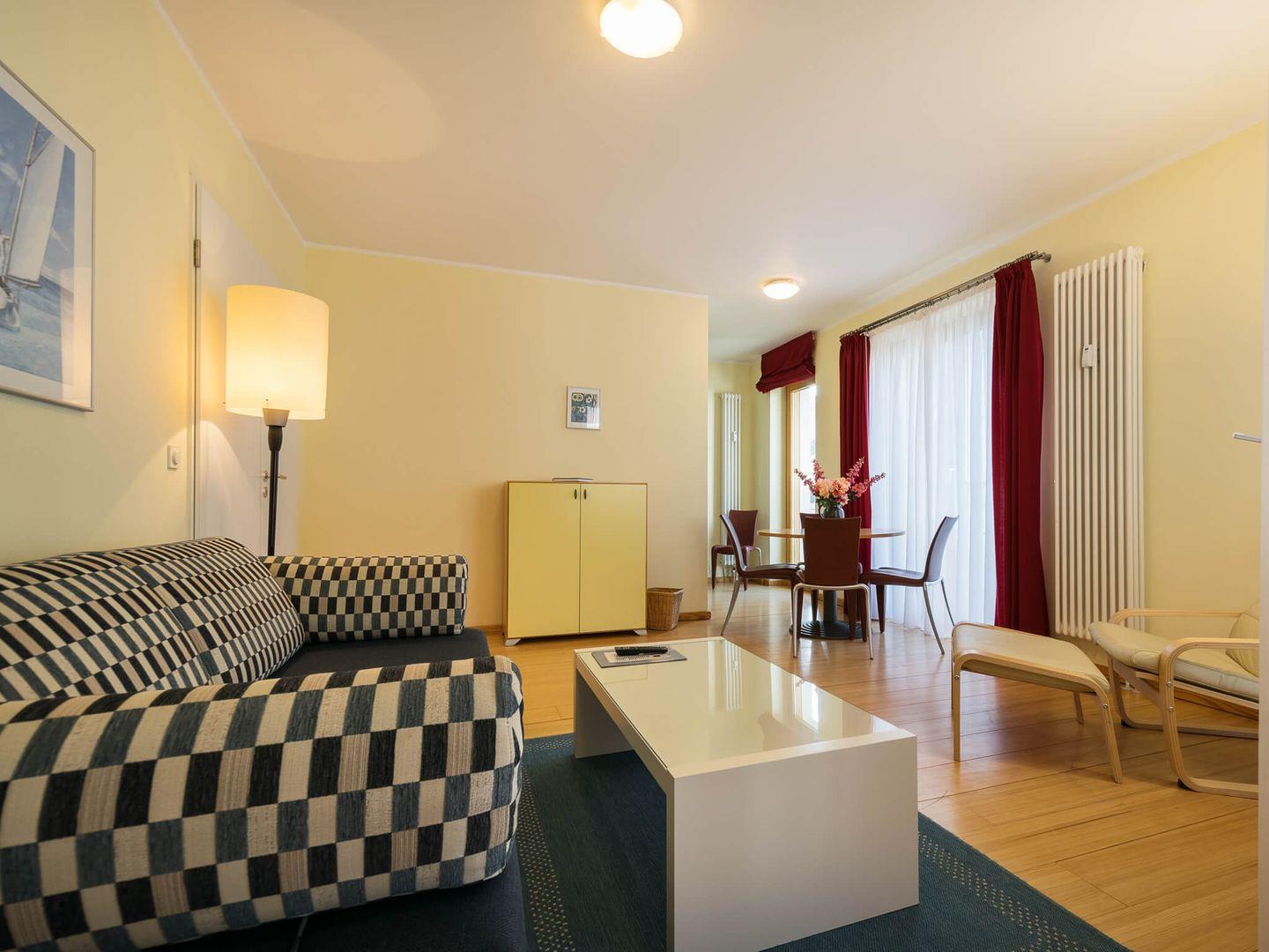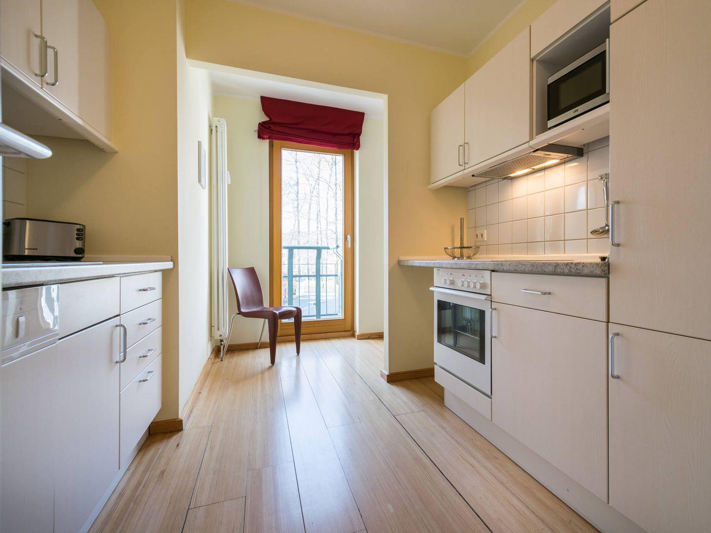 2-Zimmer-Wohnung mit Balkon, Bad mit Wanne und Dusche, Küche mit Cerankochfeld, Backofen, Geschirrspüler, Mikrowelle, Sonstiges: LED-Fernseher, DVD-Player, Musikanlage, Nichtraucher, Haustiere nicht gestattet