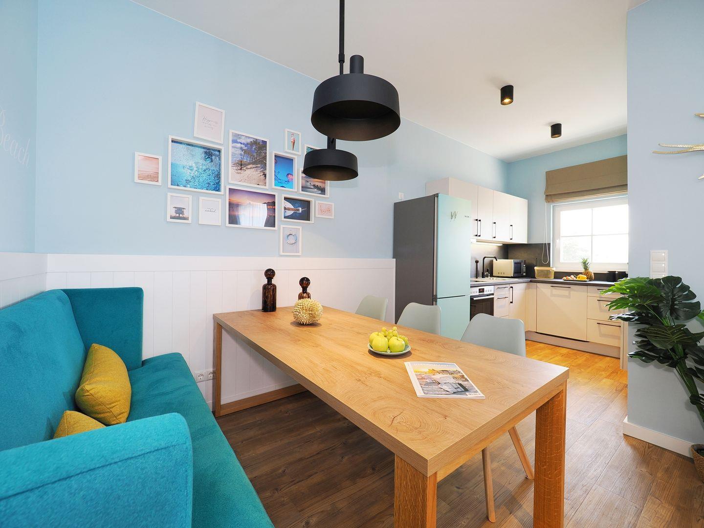 Entspannen Sie auf Ihrem privaten Balkon auf der Seebrücke Heringsdorf! Die 2023 renovierte und modern eingerichtete 1-Raum Ferienwohnung verfügt über ein Boxspringdoppelbett sowie einem gemütlichen Eckschlafsofa und Smart-TV. Neben dem komfortablen Essplatz finden Sie auch genügend Platz für Ihre Garderobe und haben einen direkten Ausgang zum Balkon mit Sitzgarnitur, wo Sie den herrlichen Weitblick auf die Ostsee genießen können. Die offene Küchenzeile ist mit Ceranfeld, Backofen, Geschirrspüler, Kühl-Gefrierkombination, Spülmaschine, Toaster sowie einer Mikrowelle, Wasserkocher und allen erforderlichen Küchenutensilien ausgestattet. Das Badezimmer überzeugt mit einer ebenerdigen Dusche, einem Waschbecken, einem WC sowie einem großen Spiegel mit Kosmetikspiegel. Für Ihren persönlichen Komfort sind Bettwäsche, Handtücher, Reinigungs- und Waschmittel als Erstausstattung inklusive. Der WLAN-Zugang ist kostenfrei nutzbar. Auf Wunsch stellen wir ein Kinderreisebett und einen Kinderhochstuhl gegen Aufpreis zur Verfügung. Vor dem Haus gibt es nur Be-und Endladeparkplätze, als Alternative bieten wir für das örtliche Parkhaus in Heringsdorf ermäßigte Parkkarten gemäß aktueller Preise. Die Parkkarte erhalten Sie bei Anreise in unserem Servicebüro. Haustiere sind in dieser Ferienwohnung herzlich willkommen, hierfür berechnen wir Gebühr gemäß aktueller Preise. Im Untergeschoss der Seebrücke steht Ihnen ein abschließbarer Fahrradraum sowie ein kleiner Waschraum mit Waschmaschine, Trockner, Bügelbrett und Bügeleisen kostenfrei zur Verfügung.