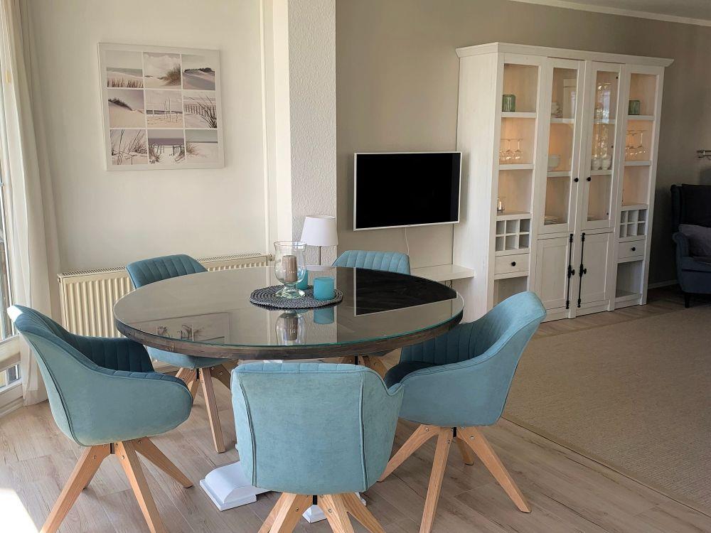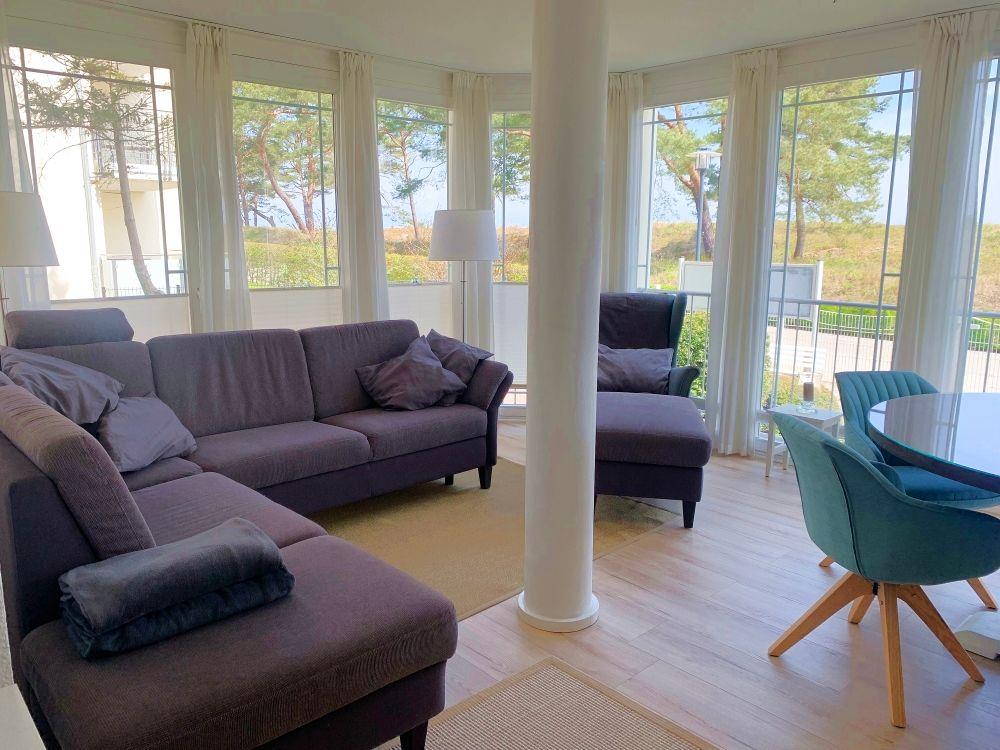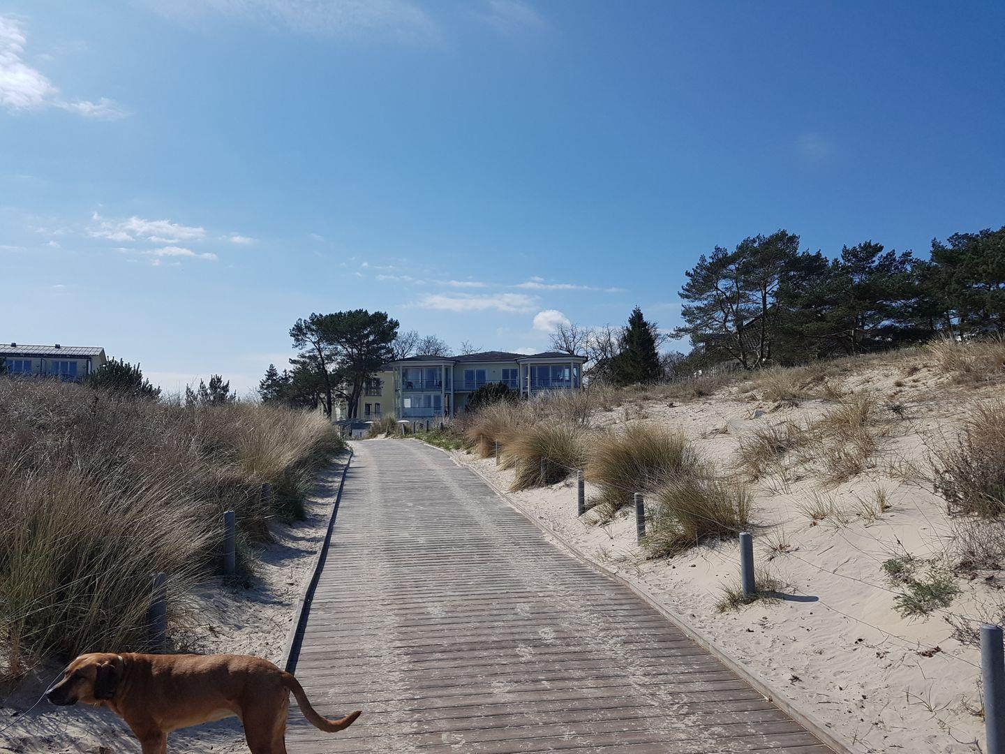 Badewanne) und einen Balkon mit Blick in die Dünen und zur Ostsee. Kostenfreies WLAN und ein PKW-Stellplatz sind verfügbar. Haustiere sind auf Anfrage gestattet.