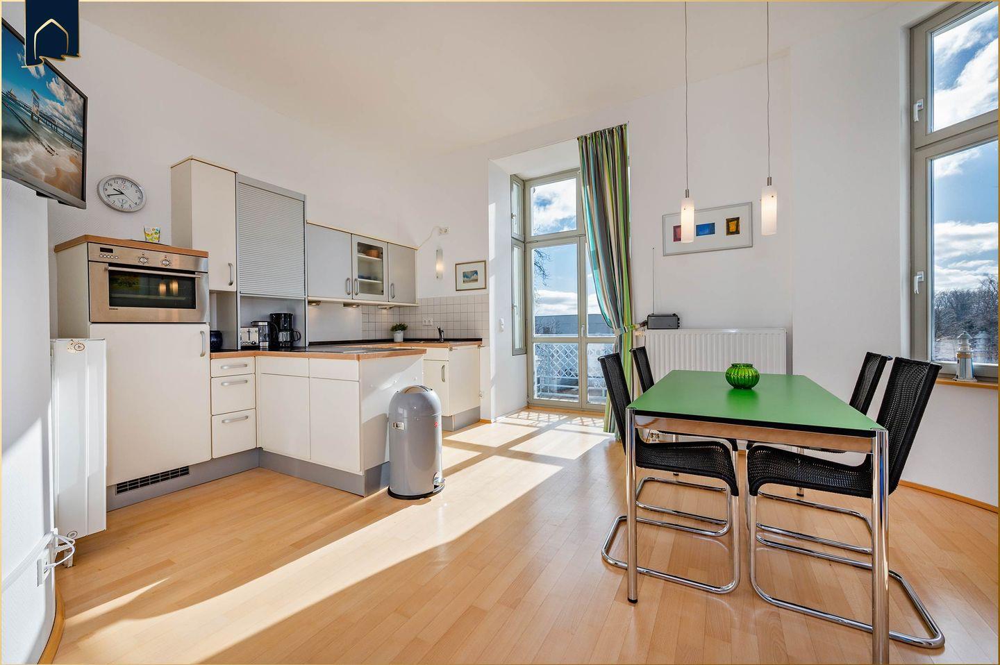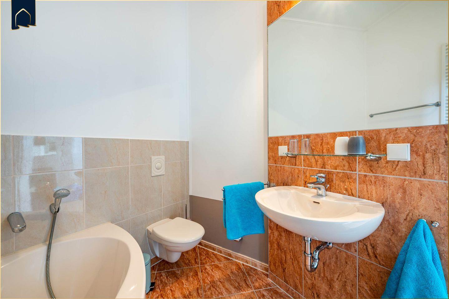 Die offene Küche ist komplett ausgestattet: Geschirrspüler, Backofen, Herd, Mikrowelle, Kühlschrank mit Gefrierfach, Wasserkocher, Toaster, Mixer und Kaffeemaschine stehen bereit. Im Essbereich finden vier Personen bequem Platz. Zwei moderne TVs, WLAN, Radio und ein Schreibtisch runden das Angebot ab. Das stilvolle Badezimmer bietet Badewanne und Dusche, zusätzlich gibt es WC, Waschbecken, Föhn und einen Verbandskasten. Ein Abstellraum für Fahrräder sowie ein Aufzug im Gebäude sorgen für zusätzlichen Komfort.