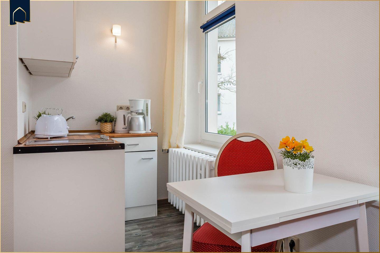 Trotz der kompakten Größe überzeugt die Unterkunft durch durchdachte Raumaufteilung und helle, freundliche Einrichtung. Zwei Schlafmöglichkeiten, ein gemütliches Sofa und ein Esstisch sorgen für Komfort. Die Küche verfügt über Kühlschrank, Gefrierfach, Herd, Mikrowelle, Kaffeemaschine, Toaster und Wasserkocher – ideal, um auch im Urlaub unabhängig zu bleiben. Für ein angenehmes Raumklima sorgt die Heizung; Rauchmelder und Sichtschutz an allen Fenstern garantieren Sicherheit und Privatsphäre. Hunde sind in dieser Ferienwohnung willkommen, was sie perfekt für tierliebe Gäste macht.