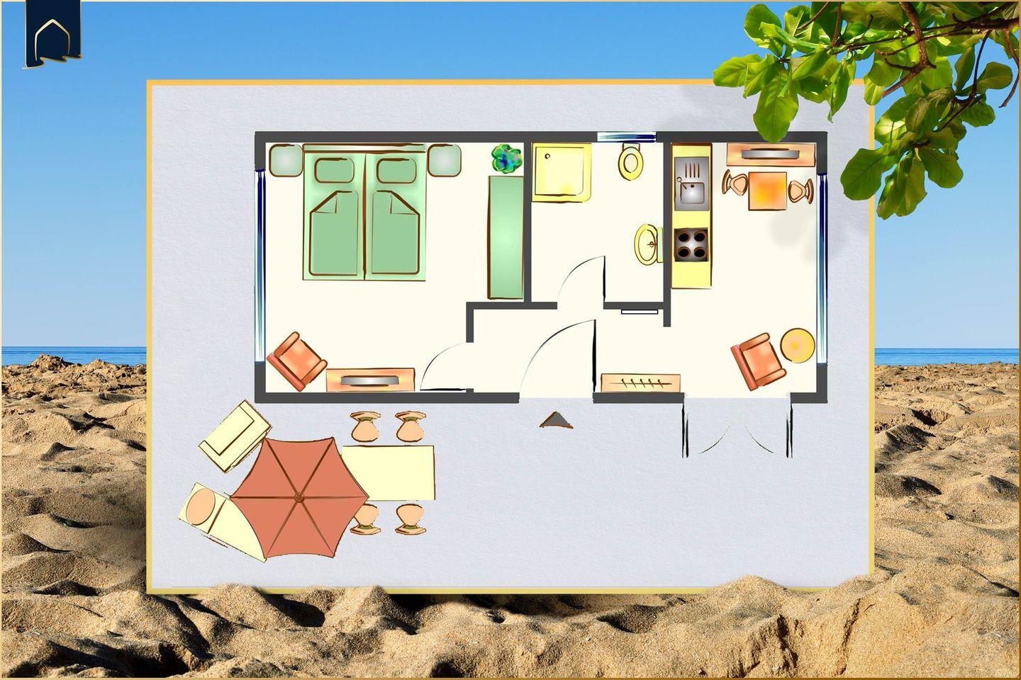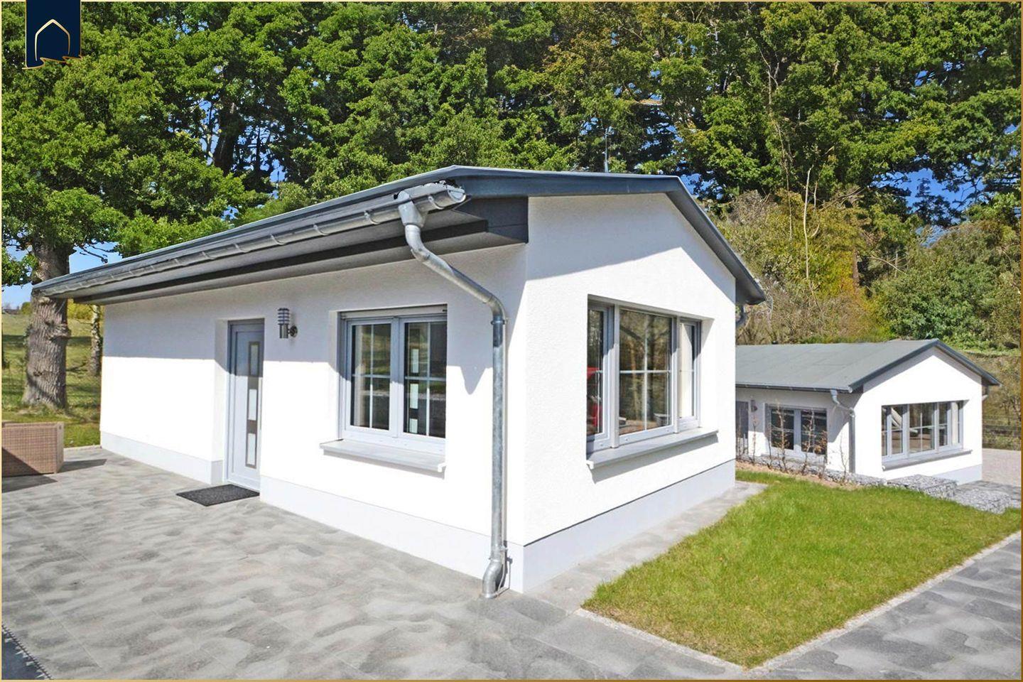 Dieser charmante, freistehende Bungalow aus dem Jahr 2018 bietet auf 30?m² Wohnfläche eine komfortable Auszeit für zwei Personen. Eingebettet in ein abgeschlossenes Grundstück mit großzügigen 2.500?m² bietet das Ferienhaus sowohl Ruhe als auch Sicherheit – ideal für Paare, Alleinreisende oder kleine Familien mit Haustier. Der lichtdurchflutete Wohnbereich mit gemütlichem Sessel, TV und direktem Zugang zur möblierten Terrasse lädt zum Entspannen ein. Eine moderne Einbauküche mit Herd, Backofen, Kühlschrank, Gefrierfach, Mikrowelle, Spülmaschine sowie Kaffeemaschine, Toaster und Wasserkocher lässt keine Wünsche offen. Für wohltuende Wärme sorgt die integrierte Heizung – auch an kühleren Tagen.