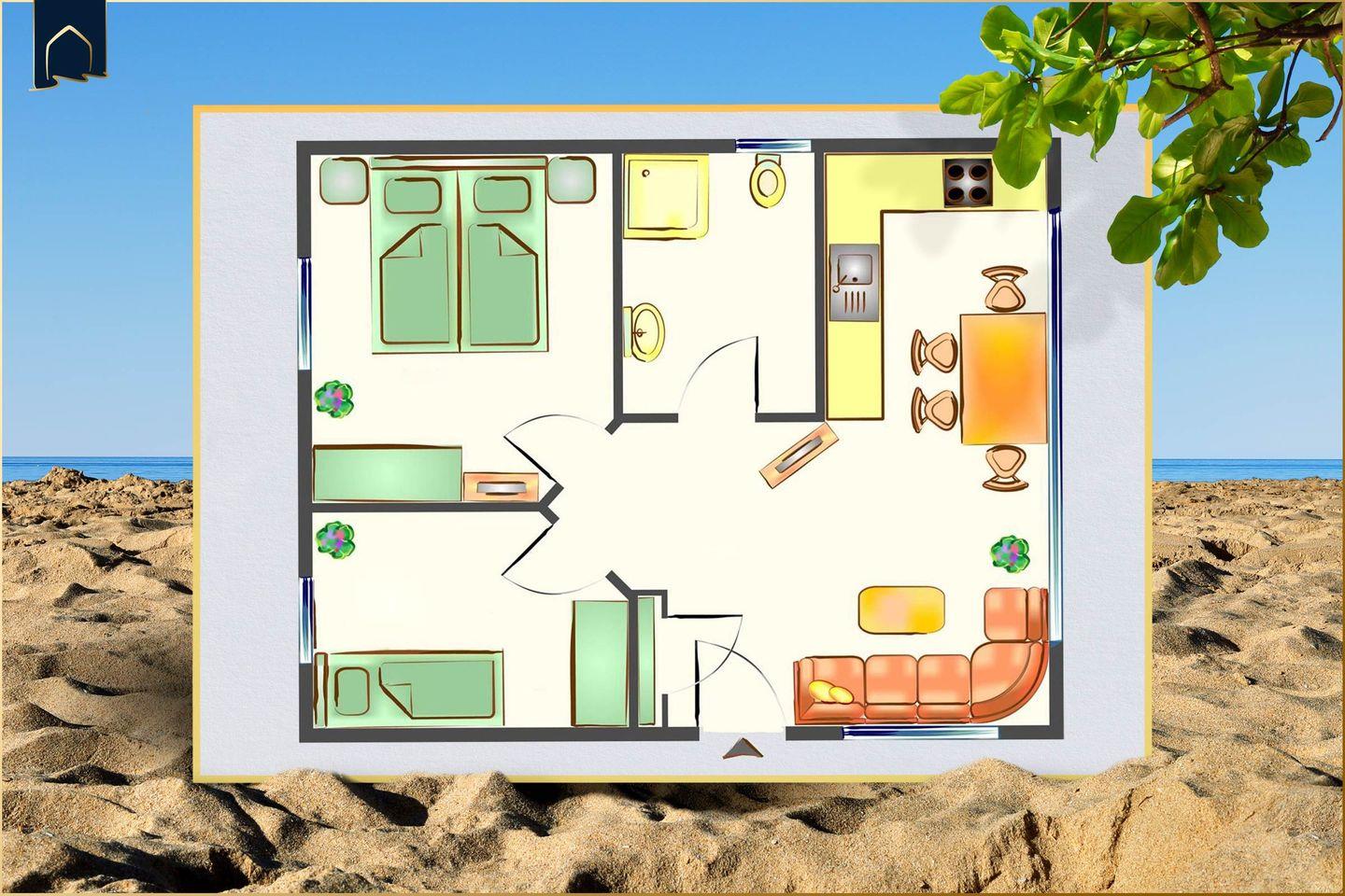 Die Ausstattung lässt keine Wünsche offen: Eine voll ausgestattete Küche mit Backofen, Herd, Mikrowelle, Kühlschrank mit Gefrierfach, Spülmaschine, Kaffeemaschine, Toaster und Wasserkocher steht zur Verfügung. Im Wohnzimmer sorgt eine gemütliche Sofaecke mit TV und WLAN für entspannte Abende. Das moderne Badezimmer ist mit einer Dusche, WC und Haartrockner ausgestattet. Alle Fenster verfügen über Sichtschutz, sodass Sie Ihre Privatsphäre jederzeit genießen können.