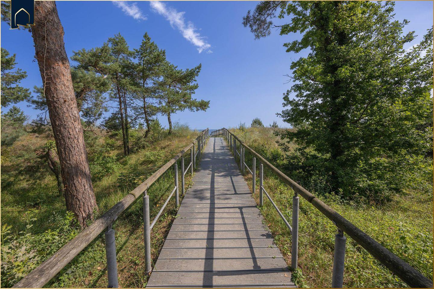 Die Lage ist hervorragend: In nur wenigen Gehminuten erreichen Sie nicht nur den Strand, sondern auch Restaurants (100?m), Einkaufsmöglichkeiten (100?m), einen Supermarkt sowie einen Arzt und Geldautomaten. Auch der Bahnhof ist nur 750?Meter entfernt – die Wohnung ist somit auch ohne Auto gut erreichbar, bietet aber zugleich einen privaten Parkplatz. Die Umgebung eignet sich wunderbar für Strandtage, Radtouren und Ausflüge zu den vielen Sehenswürdigkeiten auf Usedom – wie zum Beispiel dem Golfplatz (6,5?km), der nur wenige Autominuten entfernt liegt.