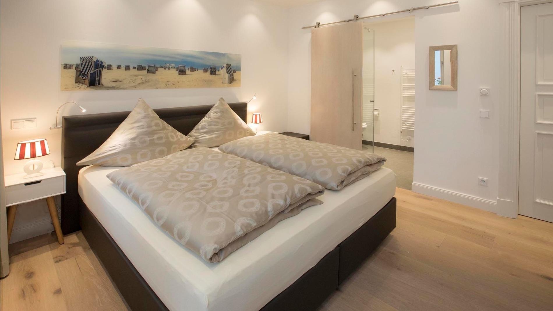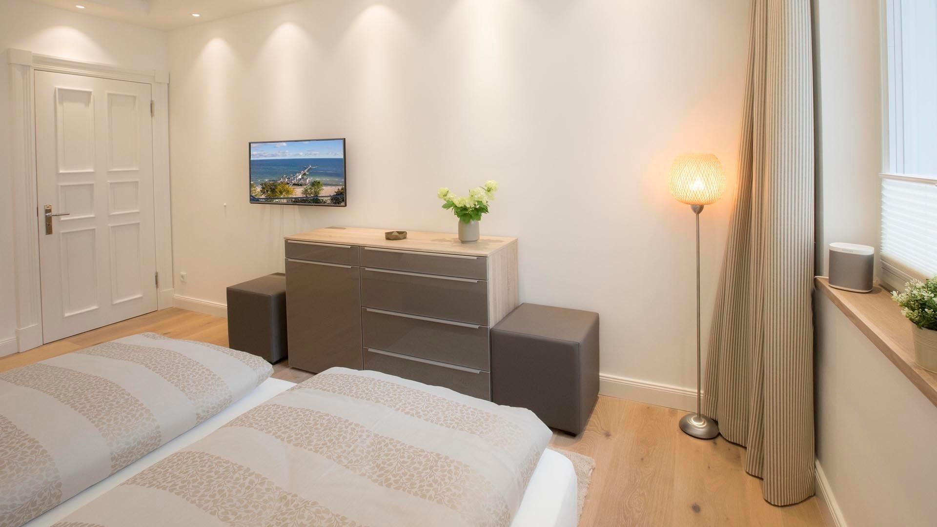 Unser 101 qm Apartment im 2. O.G. verfügt über 2 Schlafzimmer, jeweils mit Kingsize Boxspringbett, Flachbildfernseher, Sonos Musiksystem und großem Schrankangebot für ihr Gepäck.