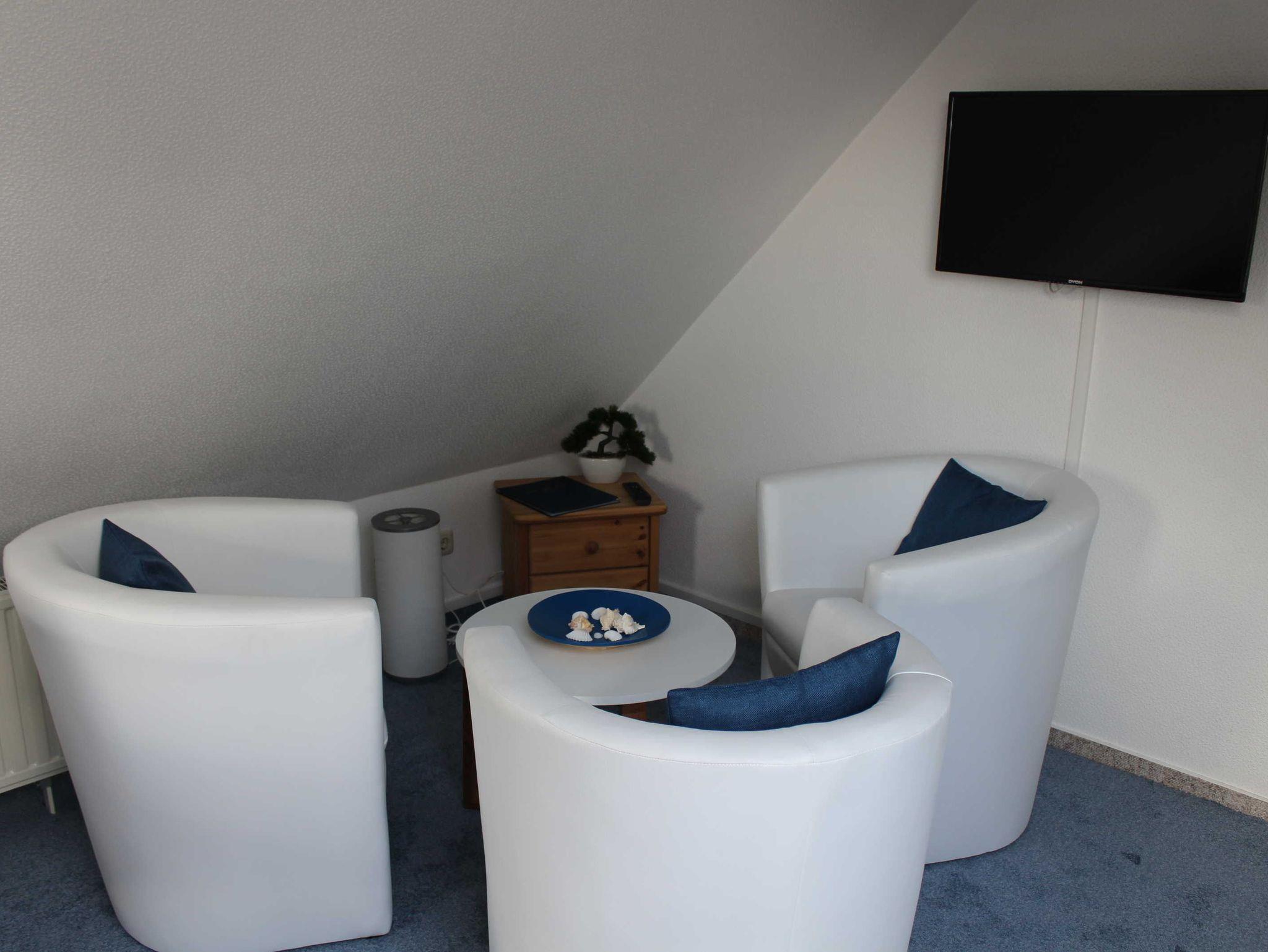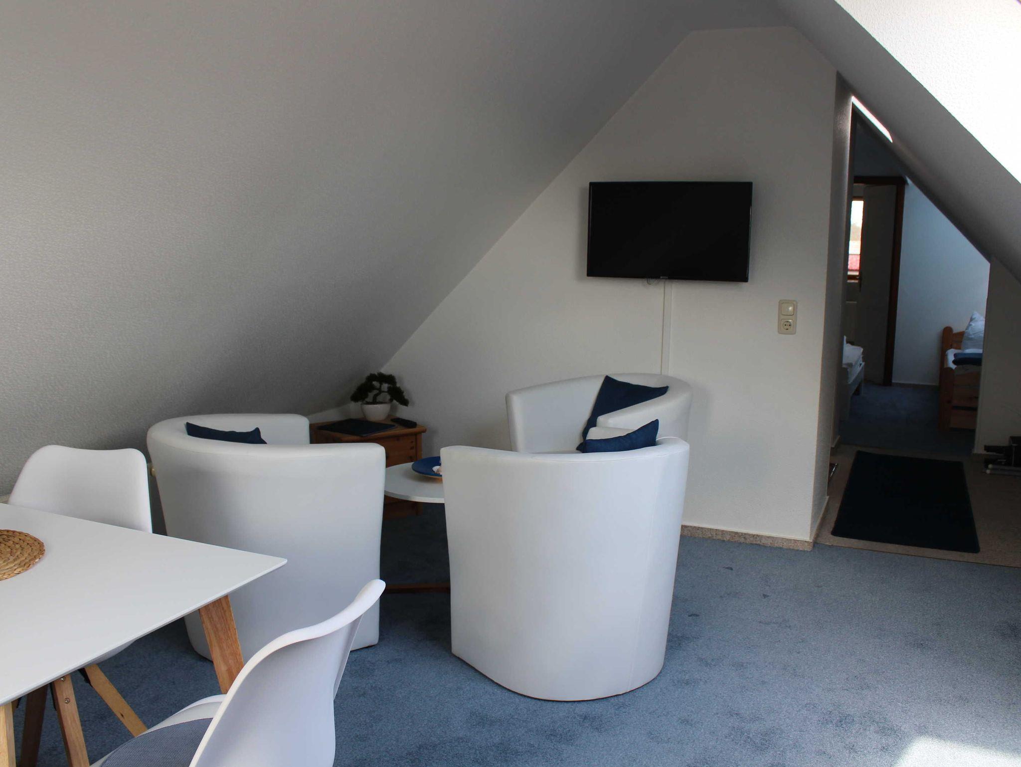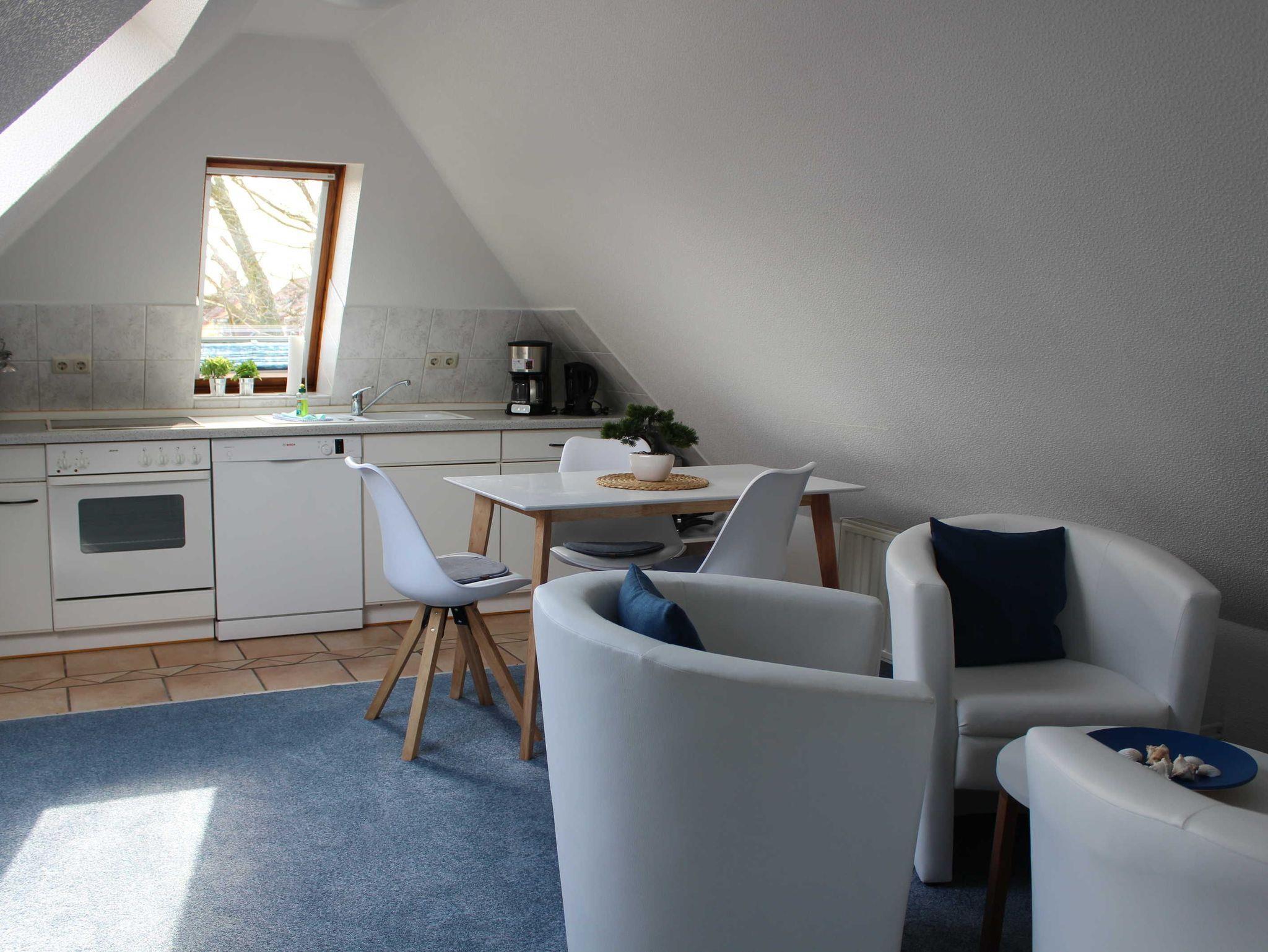 Die Ferienwohnung 3 Muschel befindet sich im 2. OG/Dachgeschoss (mit Dachschrägen) und wurde im Januar 2020 neu renoviert. Eine neue Einrichtung im gemütlichen maritimen Stil (blau-weiß), bringt Sie in perfekte Urlaubslaune und sorgt so für erholsame Tage.
