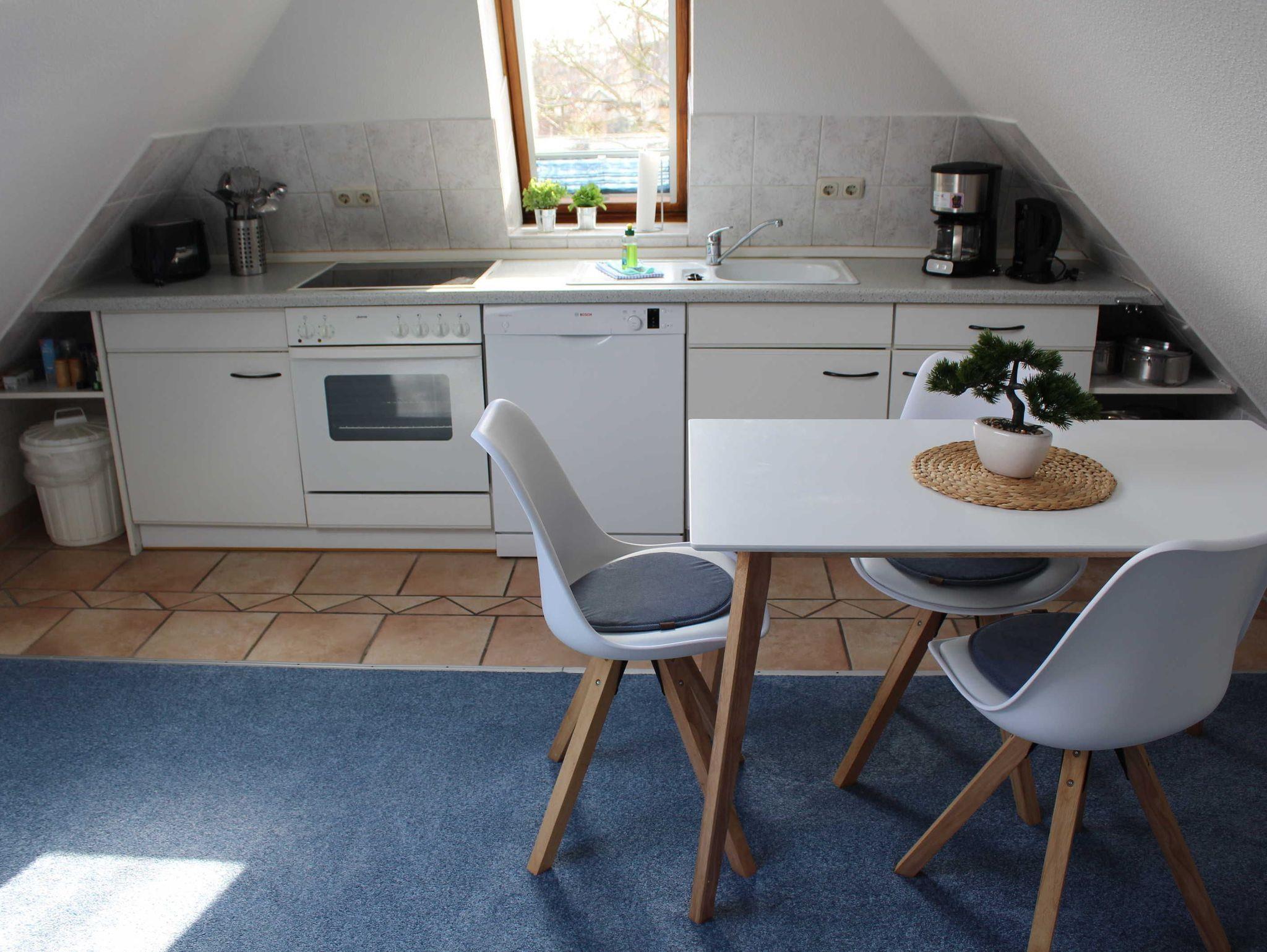 Die Einbauküche verfügt selbstverständlich über einen Geschirrspüler, Backofen, 4 Herdplatten, Kühlschrank mit Tiefkühlfach, Toaster, Wasserkocher und Kaffeemaschine.