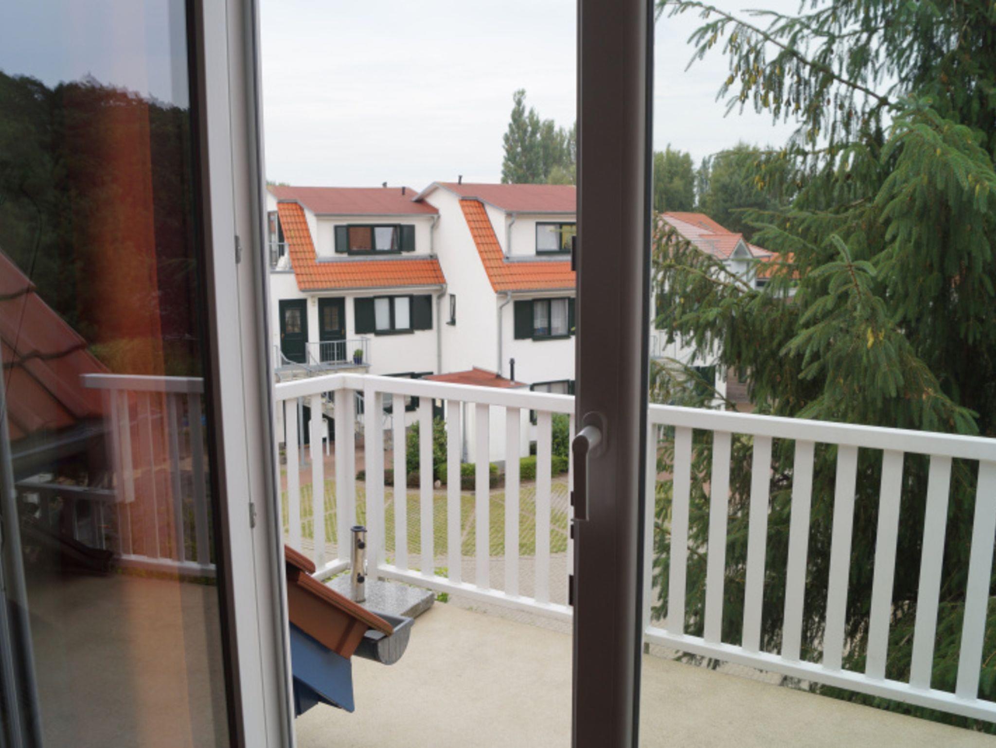 Zu der Ferienwohnung gehören außerdem ein Balkon, ein Fahrradschuppen und ein PKW-Stellplatz.