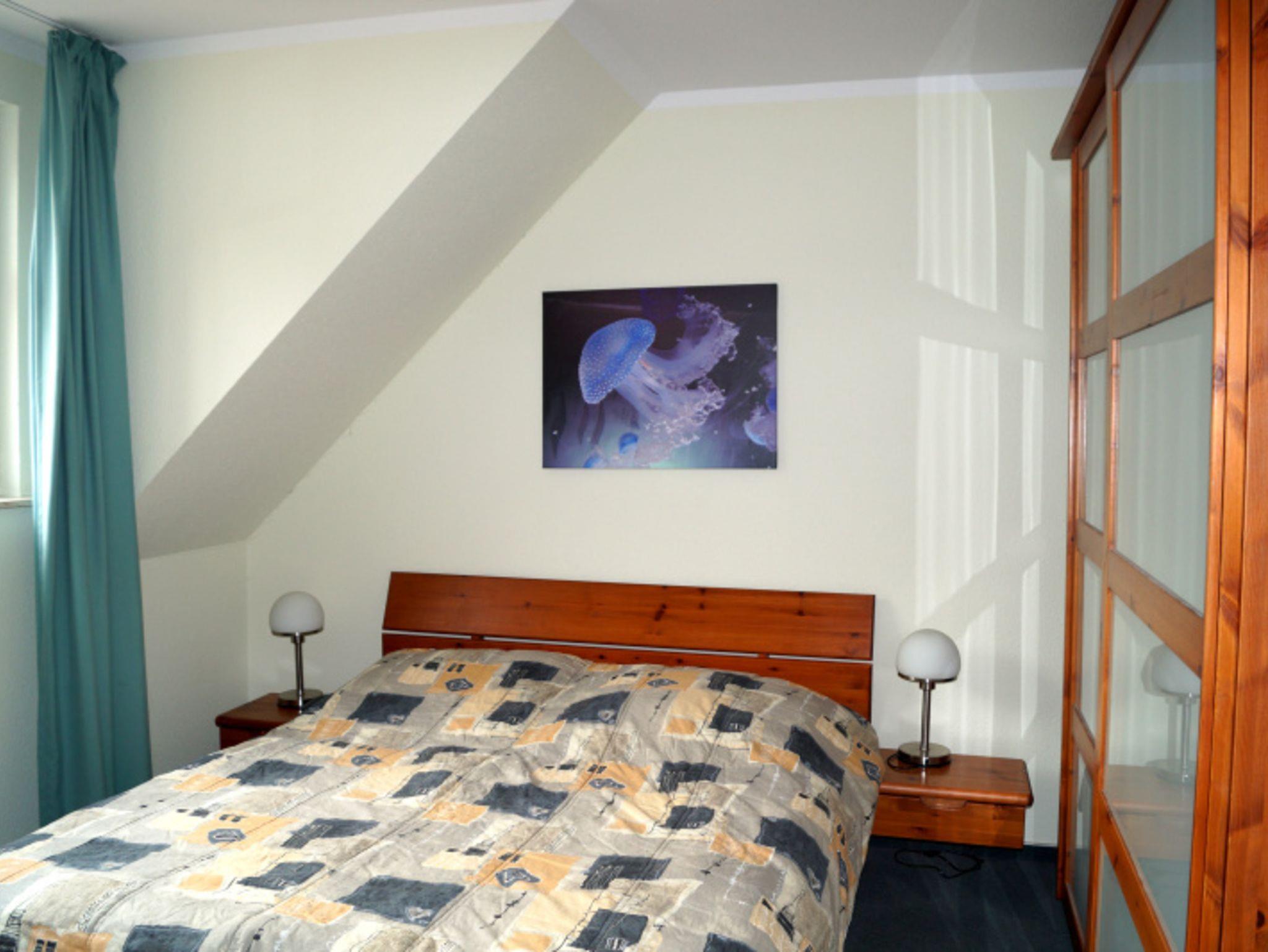 Das Schlafzimmer verfügt über ein Doppelbett und einen Flachbildfernseher. In der hellen Galerie (über eine Treppe vom Wohnzimmer erreichbar) befindet sich ein Doppelbett.