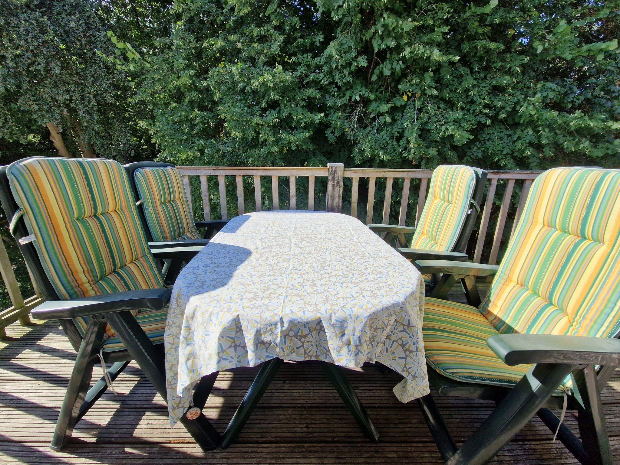 • Balkon: Südbalkon mit Balkonmöbeln, Tisch und Stühle