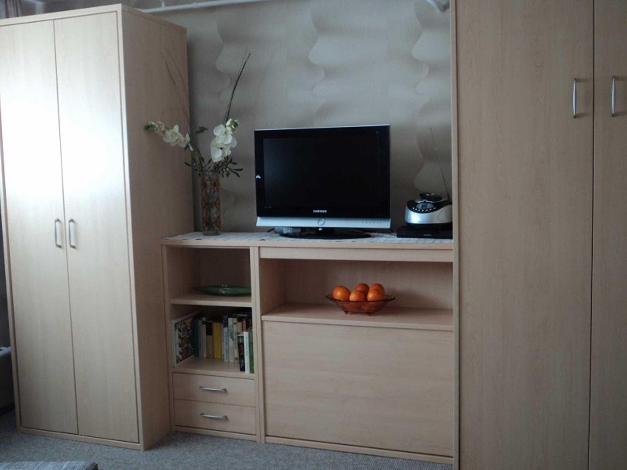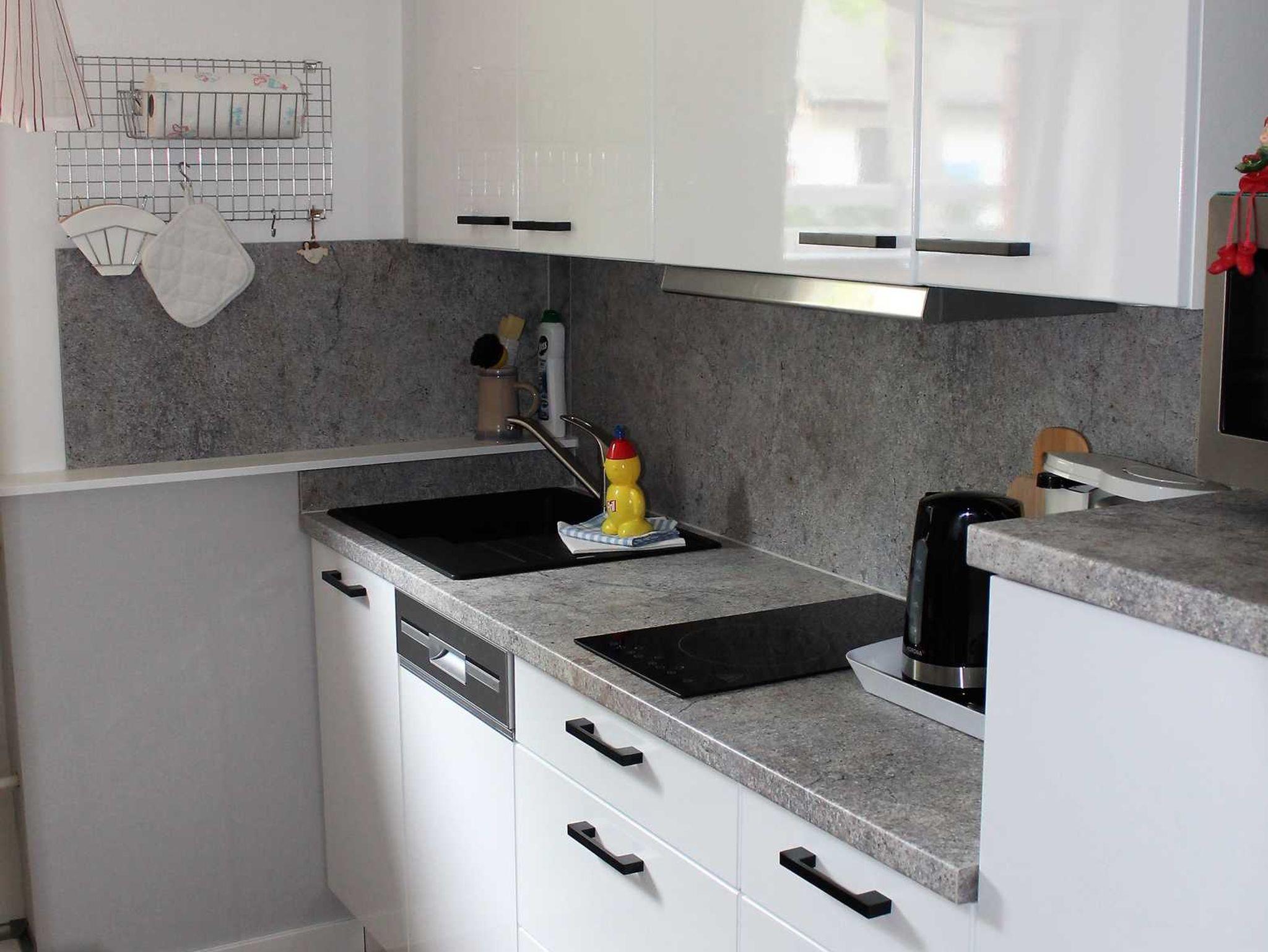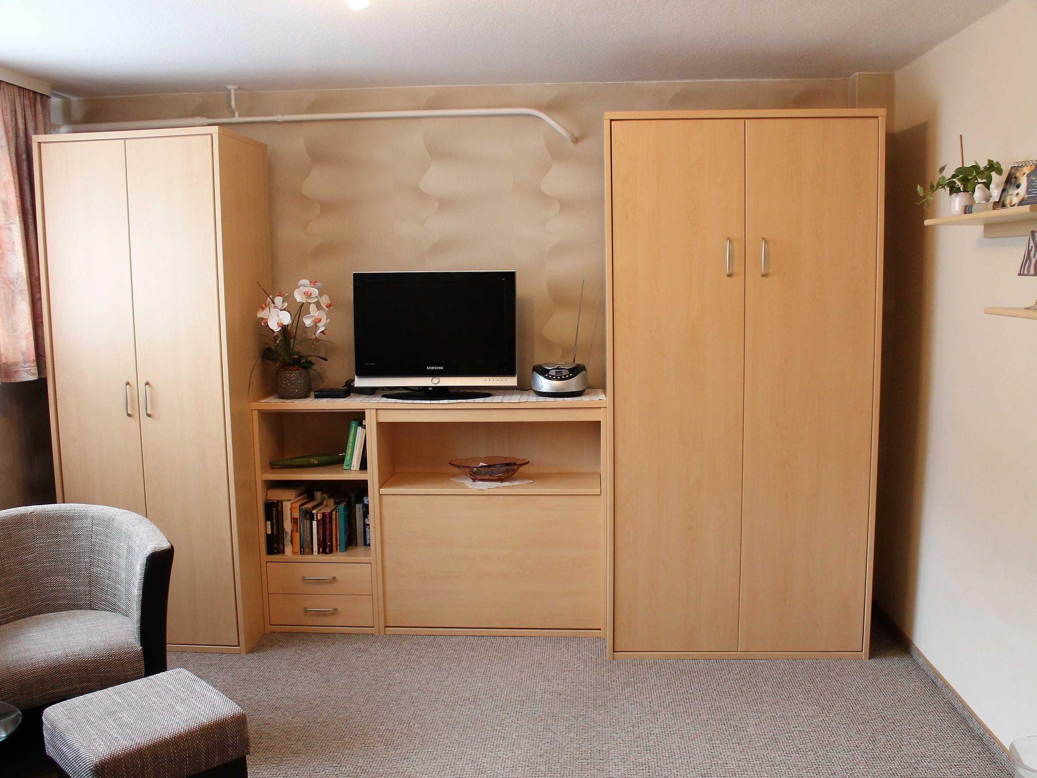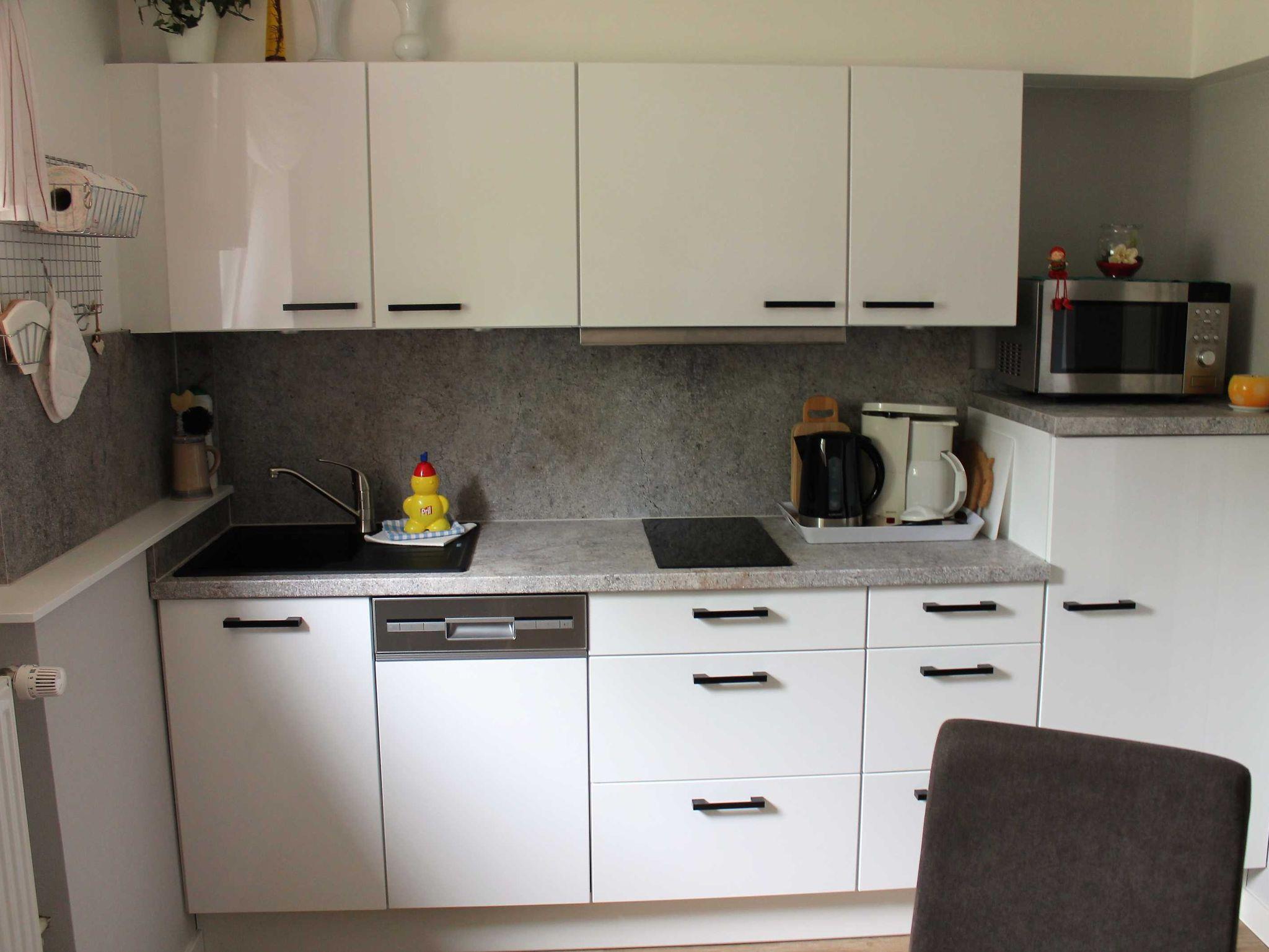 Die Ferienwohnung befindet sich im Souterrainbereich des Einfamilienhauses. Ein Schlafzimmer, ein kombinierter Wohnschlafraum mit Schrankbett sowie eine separate Küche stehen zur Verfügung.