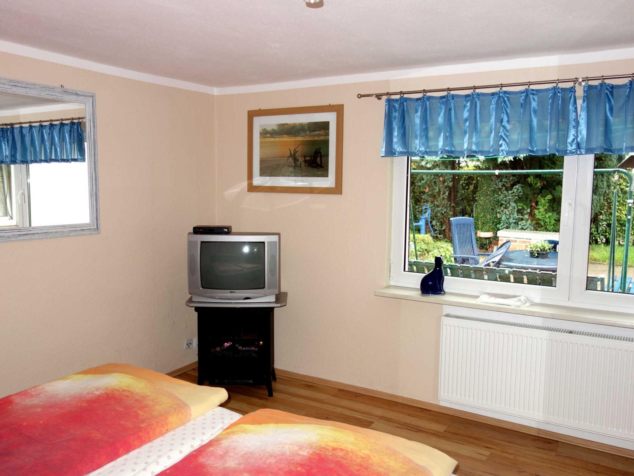 In dem einem Schlafzimmer befindet sich ein großes Doppelbett sowie ein Kleiderschrank. In dem anderen Schlafzimmer stehen zwei ausziehbare Tandembetten (= 4 Betten) und ein Kleiderschrank.