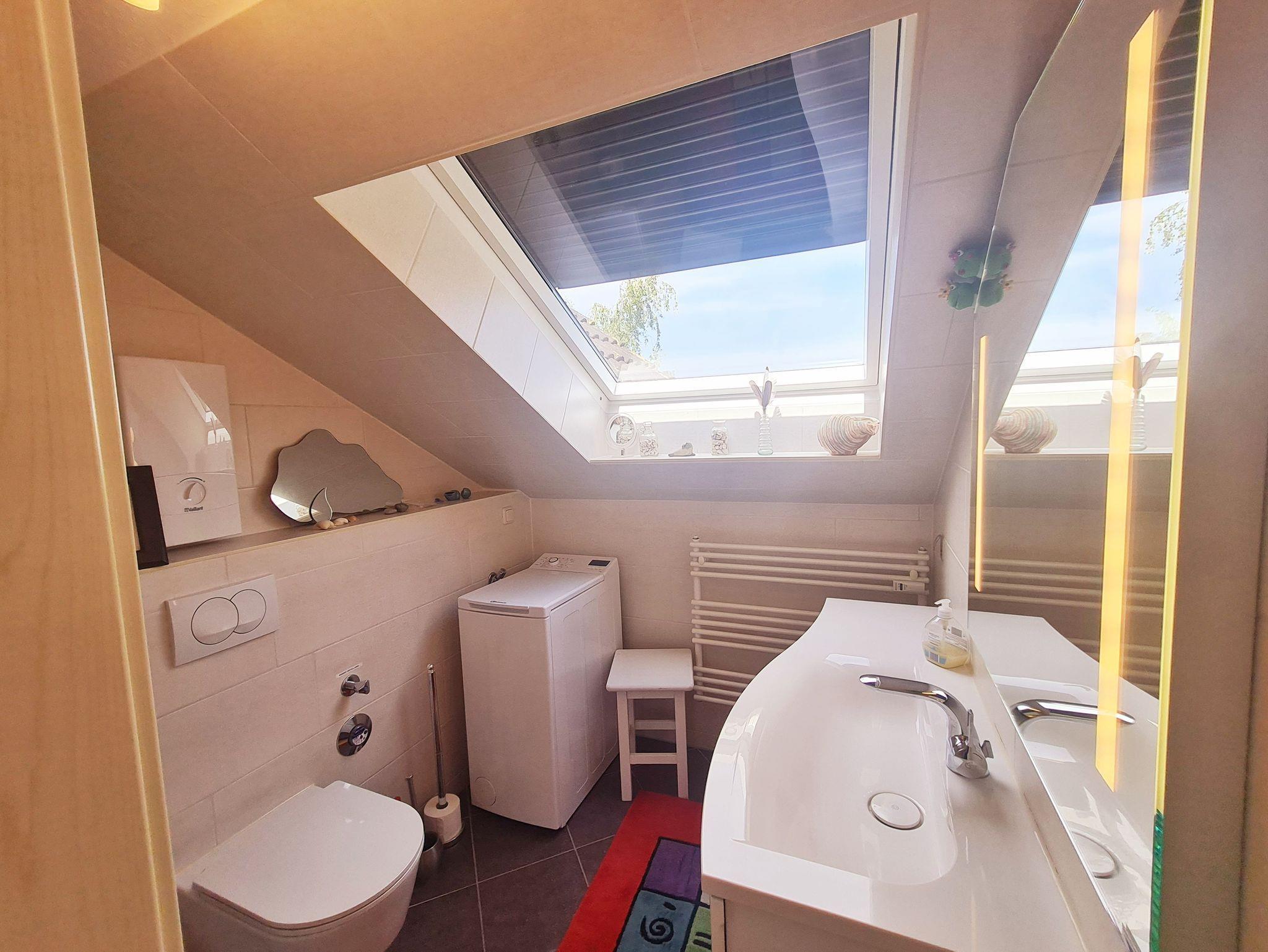 • Bad: ebenerdiger Dusche, Waschbecken,+ Unterschrank, Toilette, Spiegel, Schrank, Badheizkörper, Waschmaschine