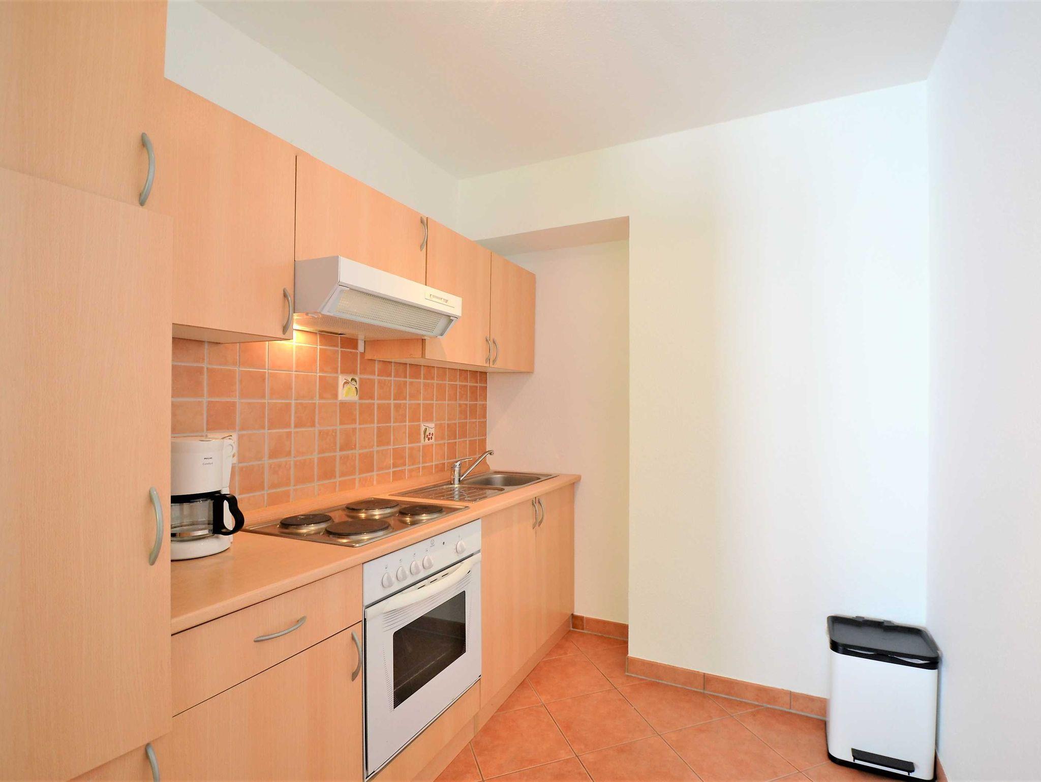 Unsere kleine, aber feine Ferienwohnung bietet Ihnen eine Wohnküche, ein Schlafzimmer und ein Badezimmer mit Dusche. Die Küchenzeile ist mit Kühlschrank, Backofen, Vier-Platten-Herd, Kaffeemaschine etc. komplett ausgestattet.