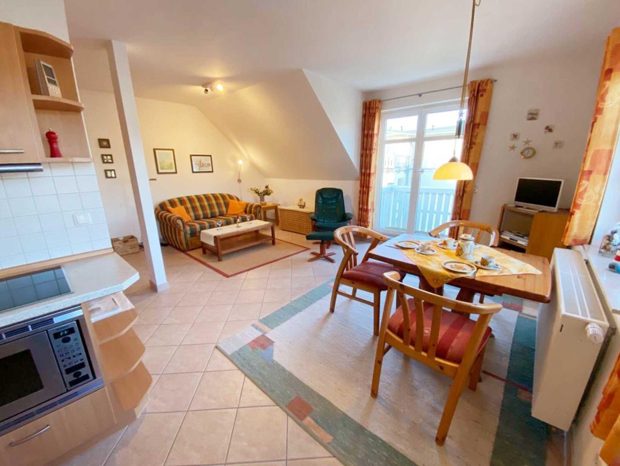 Nur 600m vom Strand entfernt liegt diese gemütlich eingerichtete Wohnung im 2. Obergeschoss mit ca. 52 m² Wohnfläche und einem sonnigen Südwestbalkon. Die sehr freundliche Wohnung kann mit bis zu 4 Personen genutzt werden. Ein separates Schlafzimmer und eine gemütlich Schlafcouch bieten Platz hierfür. Der Wohnung ist der kostenlose Stellplatz 15 zugeordnet. Waschmaschine und Trockner können gegen eine Gebühr im Hause genutzt werden. WLAN steht Ihnen kostenlos zu Verfügung.