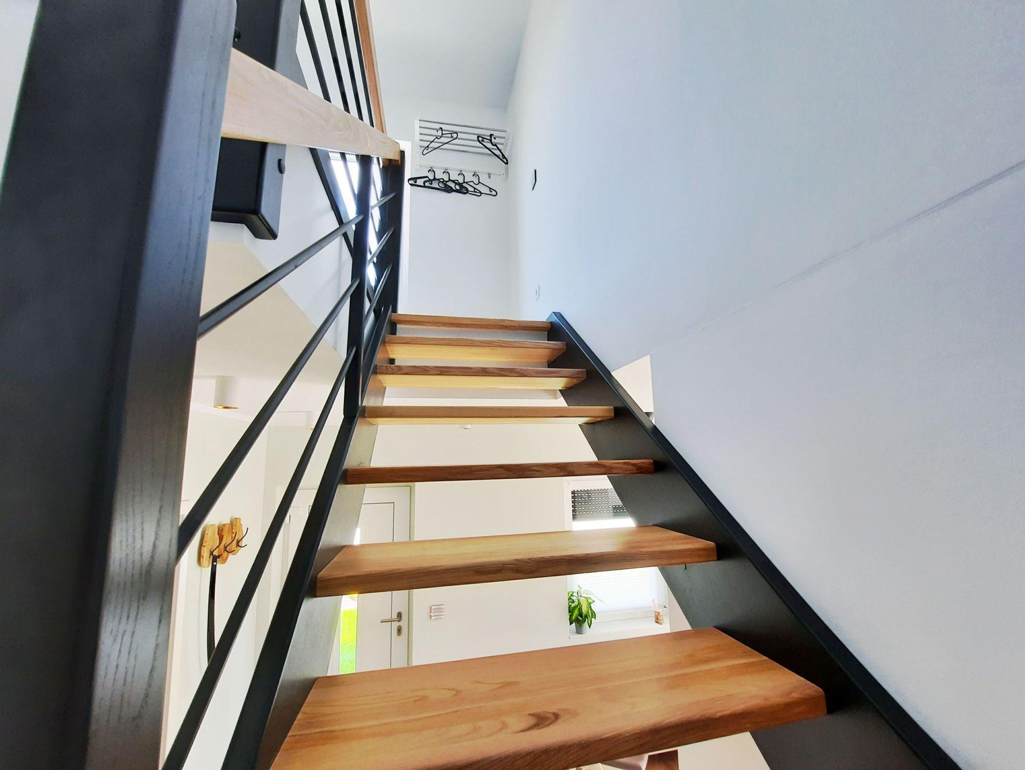 Die Unterkunft ist mit Außenjalousien zum Abdunkeln und im Erdgeschoss mit einer Fußbodenheizung ausgestattet.