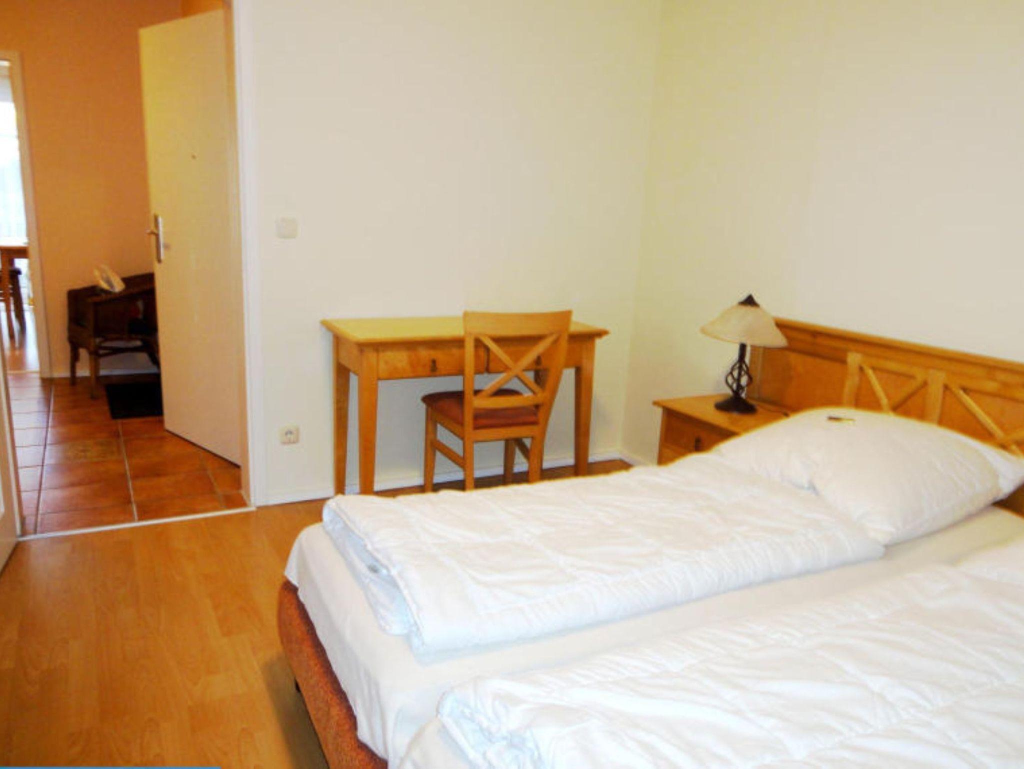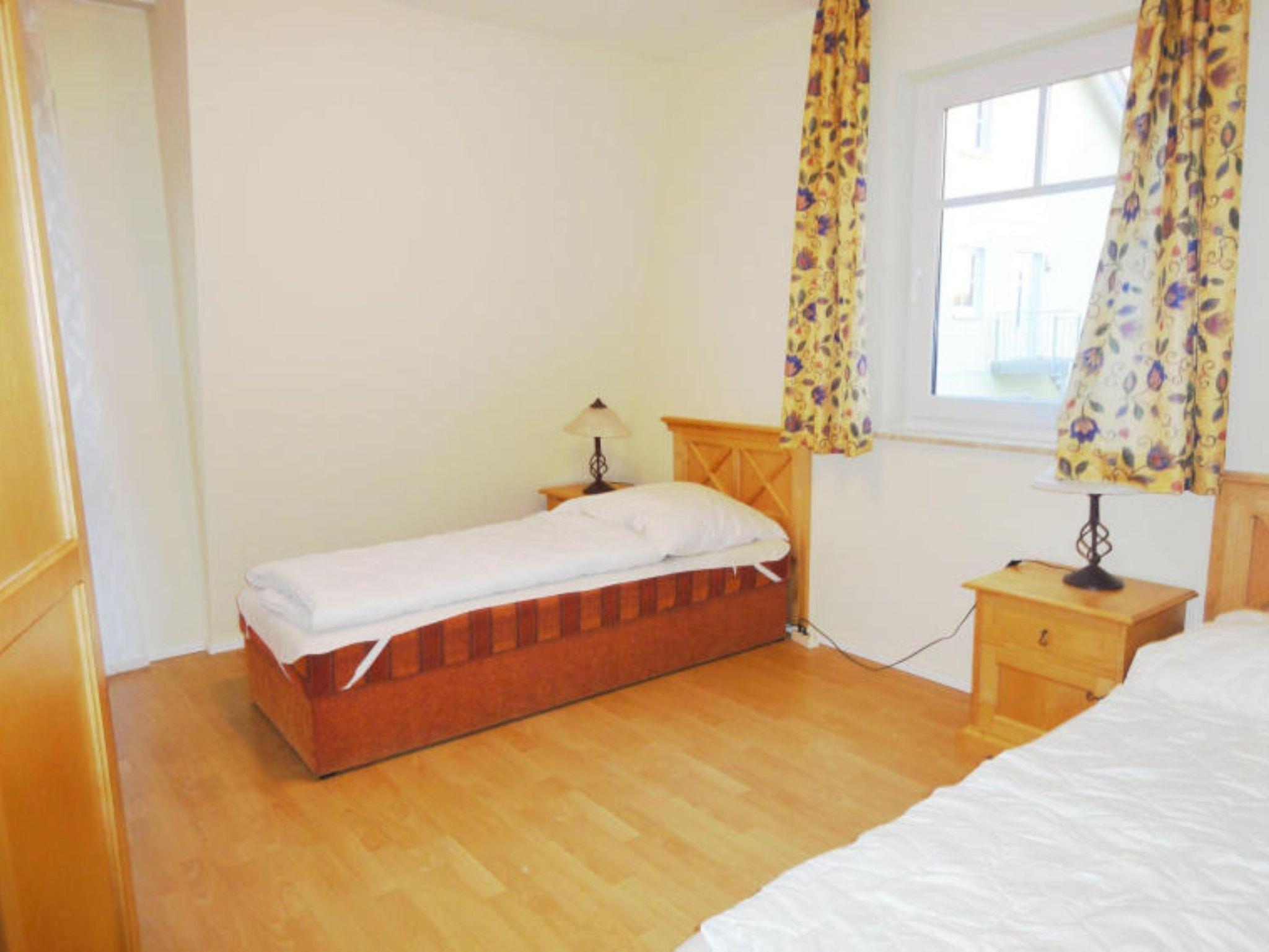 Das Schlafzimmer verfügt über zwei zusammengestellte Liegen. In einem weiteren Zimmer stehen 2 Einzelliegen.