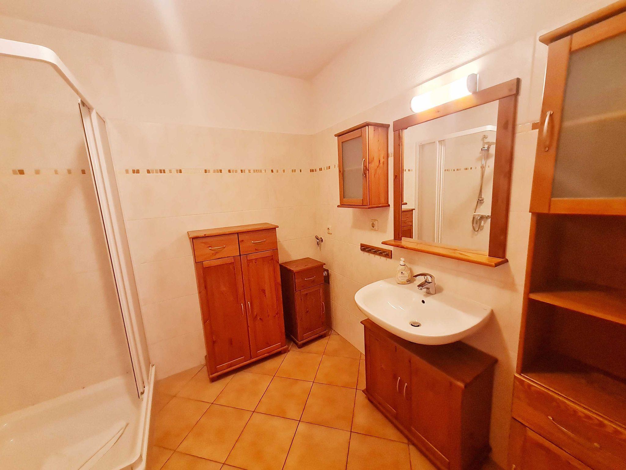 • Bad: Dusche, Waschbecken, Toilette, Spiegel, Unterschrank WB, Hocker, Schränke