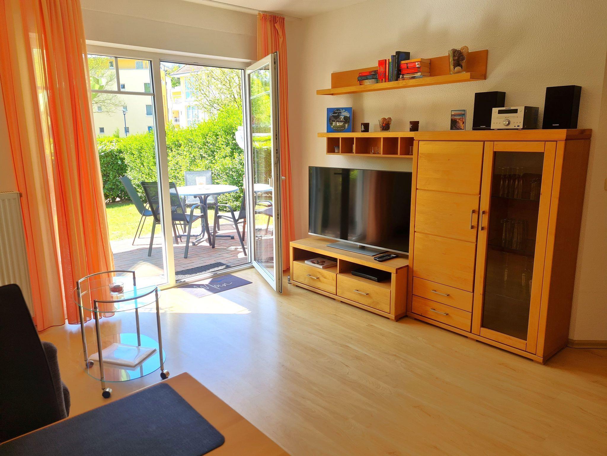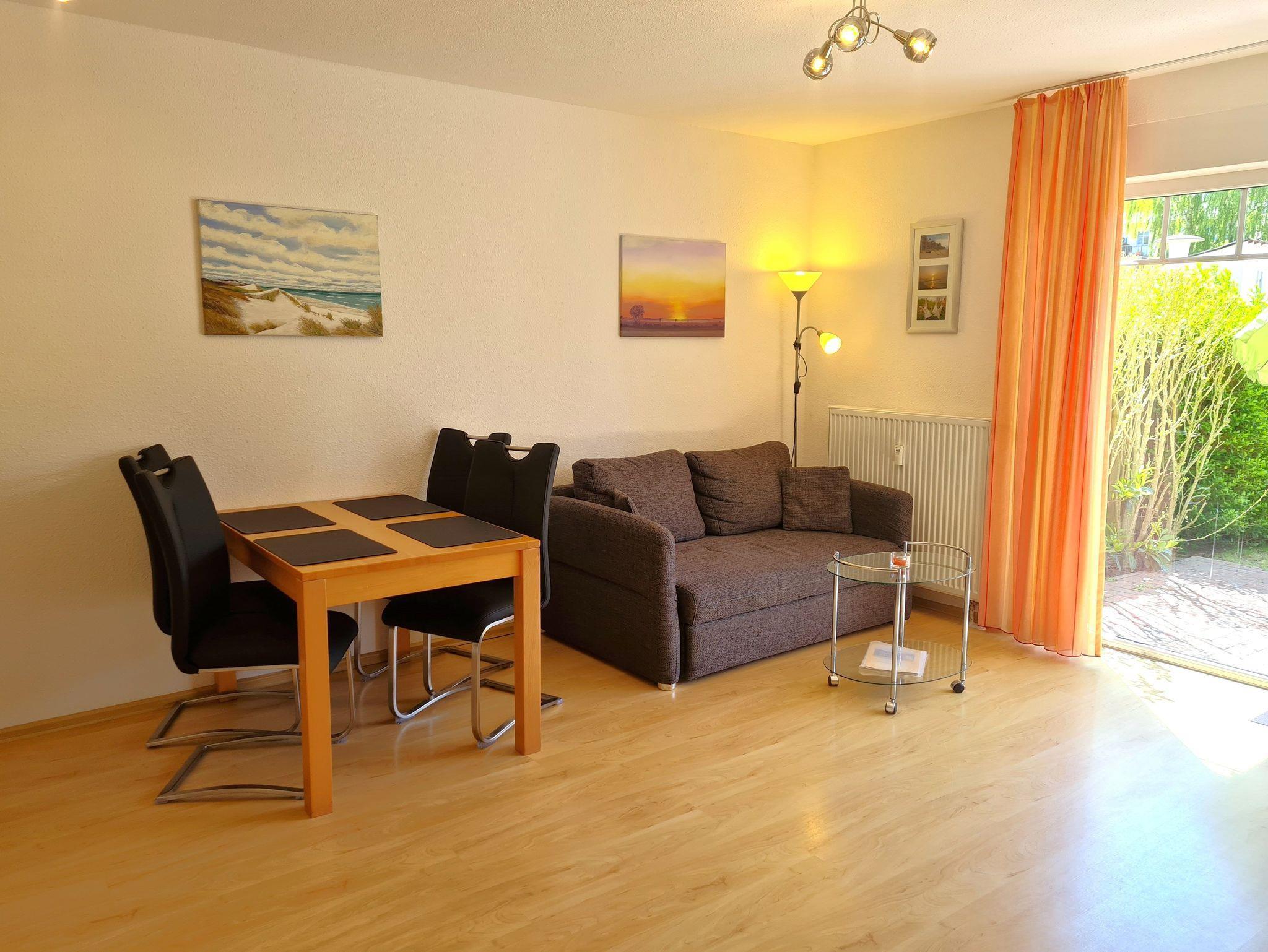 Nur 350m vom Strand entfernt liegt diese gemütlich und modern eingerichtete 2-Raum-Wohnung im Erdgeschoss mit ca. 48 m² Wohnfläche einer sonnigen Südterrasse. Die sehr helle und familienfreundliche Wohnung kann mit bis zu 3 Personen genutzt werden. Ein separates Schlafzimmer und eine 1,40x2,00 m große Schlafcouch, bieten Platz für 3 Personen. Praktisch erreichbar befindet sich neben dem Objekt ein Abstellraum (innenliegend), der Platz für Fahrrädern o.ä. bietet. Der Wohnung ist ein kostenloser Stellplatz Nr. 25 zugeordnet. WLAN steht Ihnen kostenlos zu Verfügung.