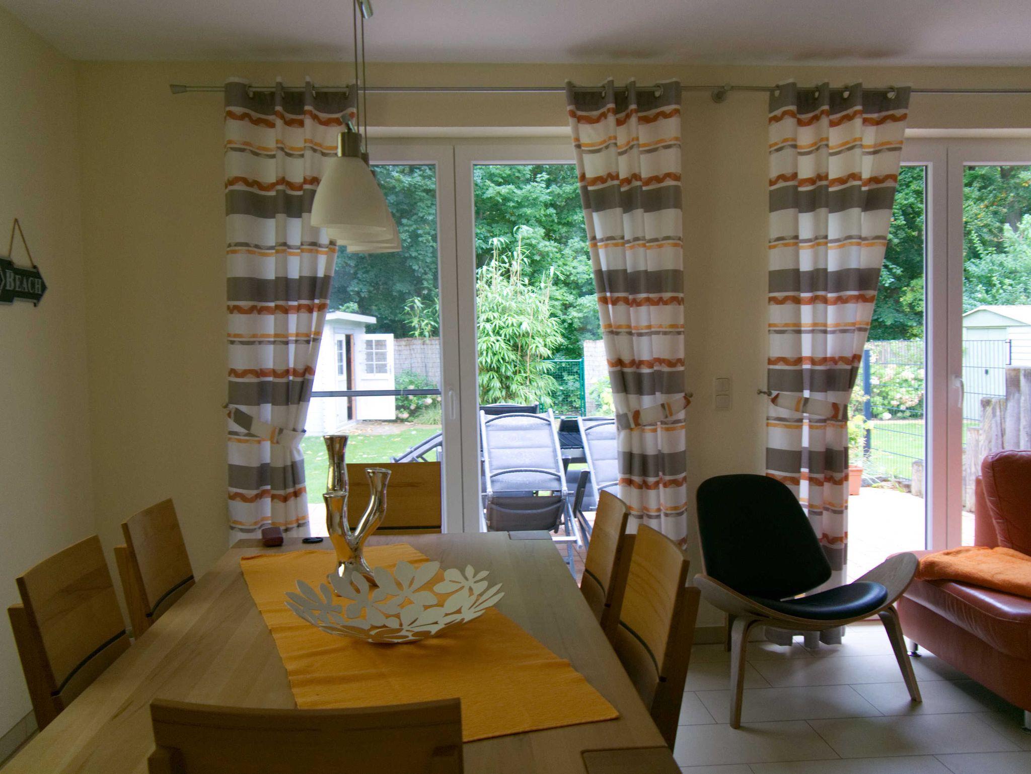 Unser Ferienhaus bietet Ihnen Komfort zu jeder Jahreszeit. Der Kamin im Wohnzimmer sorgt für wohlige Wärme im Winter, im Frühjahr und Herbst lädt ein Saunabesuch zum Aufwärmen ein und nach einem ausgiebigen Strandtag bzw. -spaziergang im Sommer kann man bei einem Grillabend auf der Terrasse mit Blick in den Garten und den Wald den Urlaubstag genießen und ausklingen lassen.