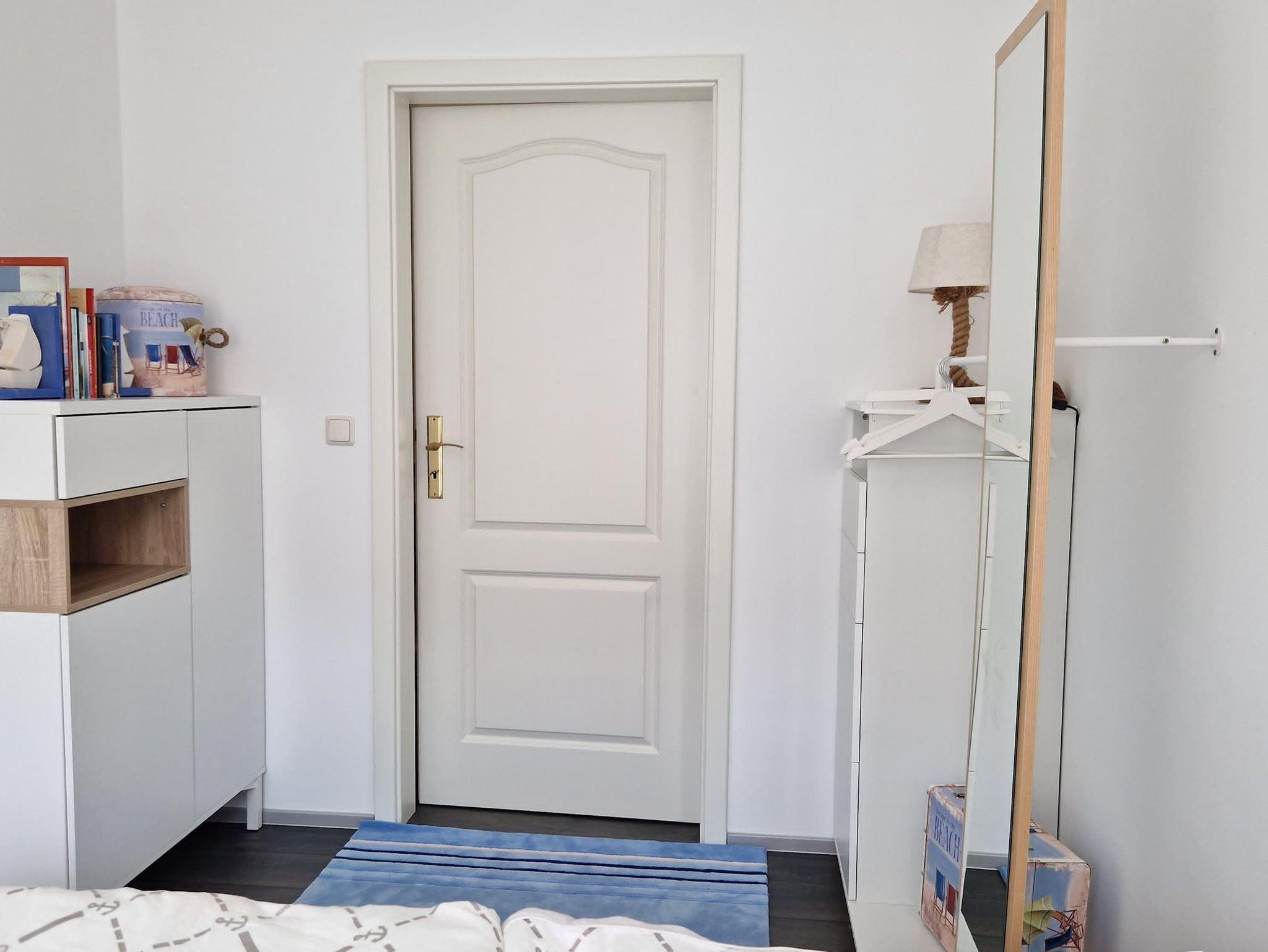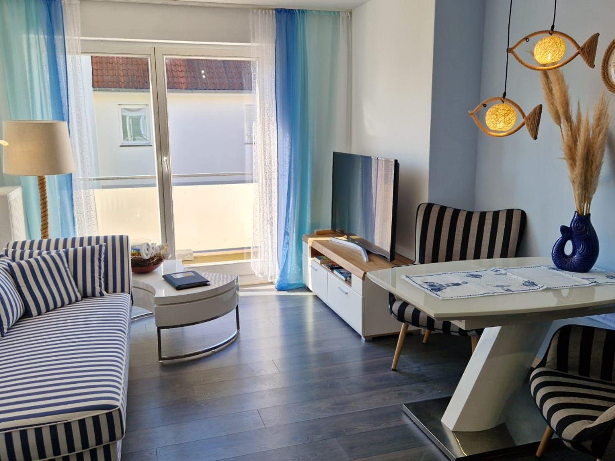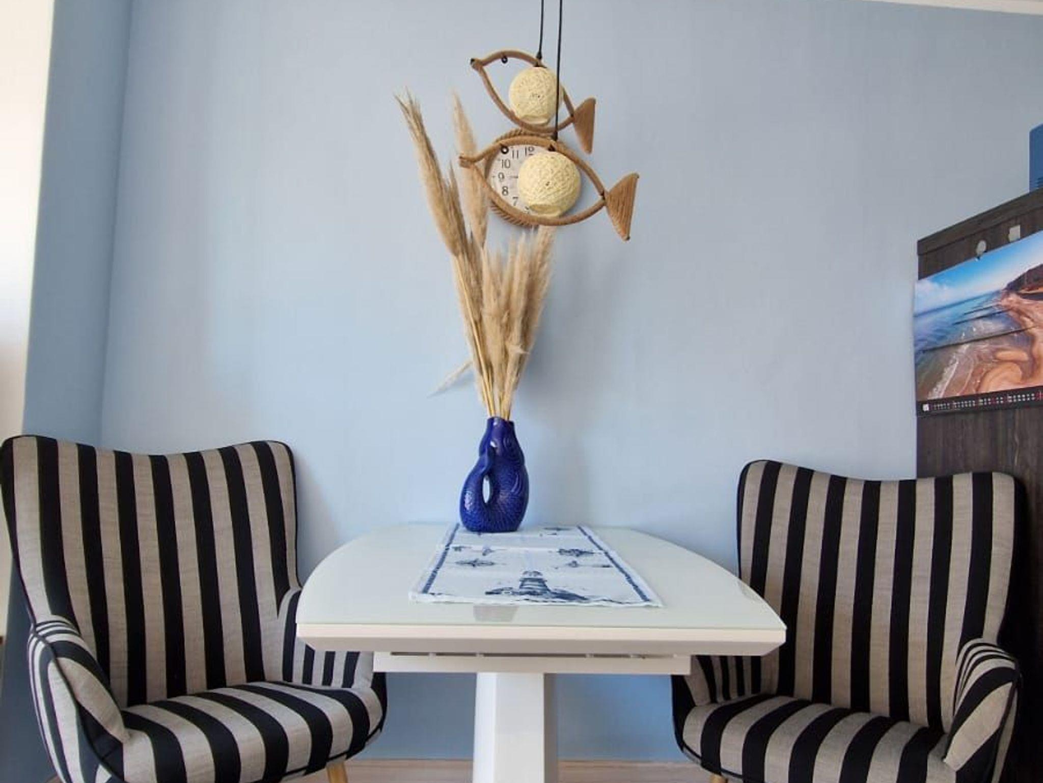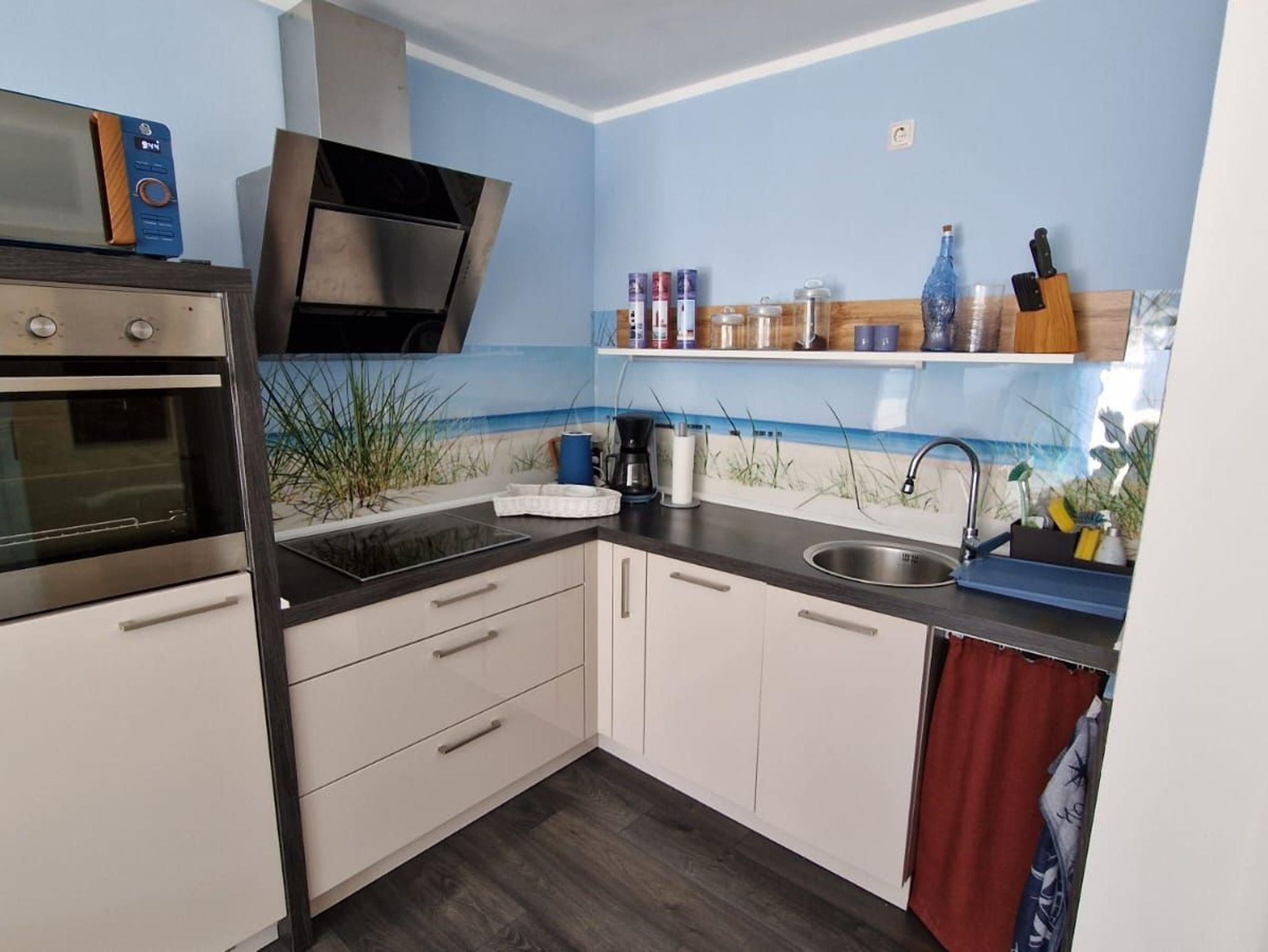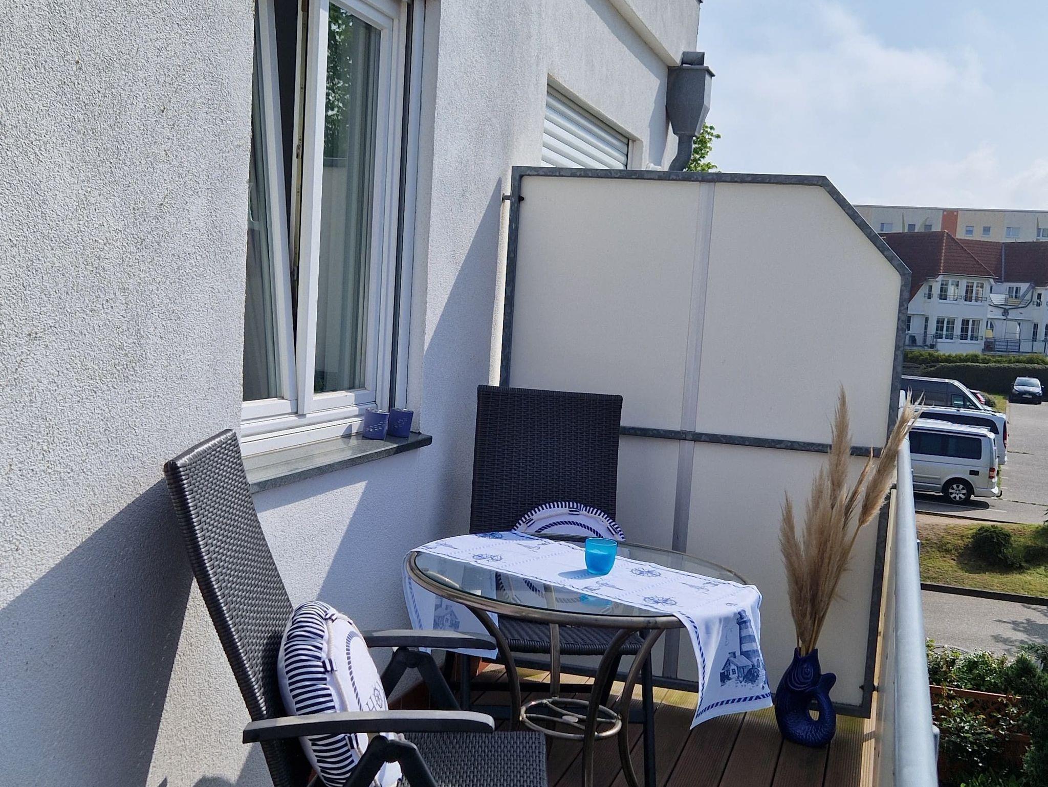 Ihr Urlaubsdomizil befindet sich in der 2. Etage und bietet mit 46 qm genügend Platz für 2 Personen. Hier erwartet Sie ein modernes und mit viel Liebe maritim eingerichtetes Appartement. Wohnzimmer und Küche sind miteinander kombiniert. Ein separates Zimmer mit einem großem Doppelbett bietet Platz zum Schlafen. Das Bad verfügt über eine Dusche und WC. Sie haben Lust auf ein Frühstück oder Abendessen im Freien? Auf dem großen Südbalkon ist das in den Sommermonaten möglich, Stühle, Tisch und Sonnenschirm stehen bereit. Ein PKW Stellplatz ( Nr. 45 ) steht kostenlos zur Verfügung. Einkaufsmöglichkeiten sind in 3 Minuten Fußweg erreichbar. Ab sofort steht kostenlos WLAN zur Verfügung.