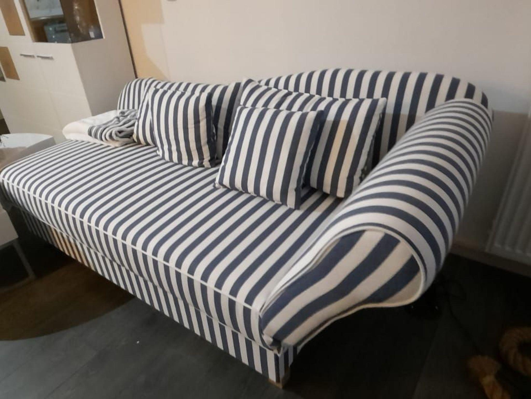 Couch mit Schlaffunktion, Flachbild-TV, Sideboard,