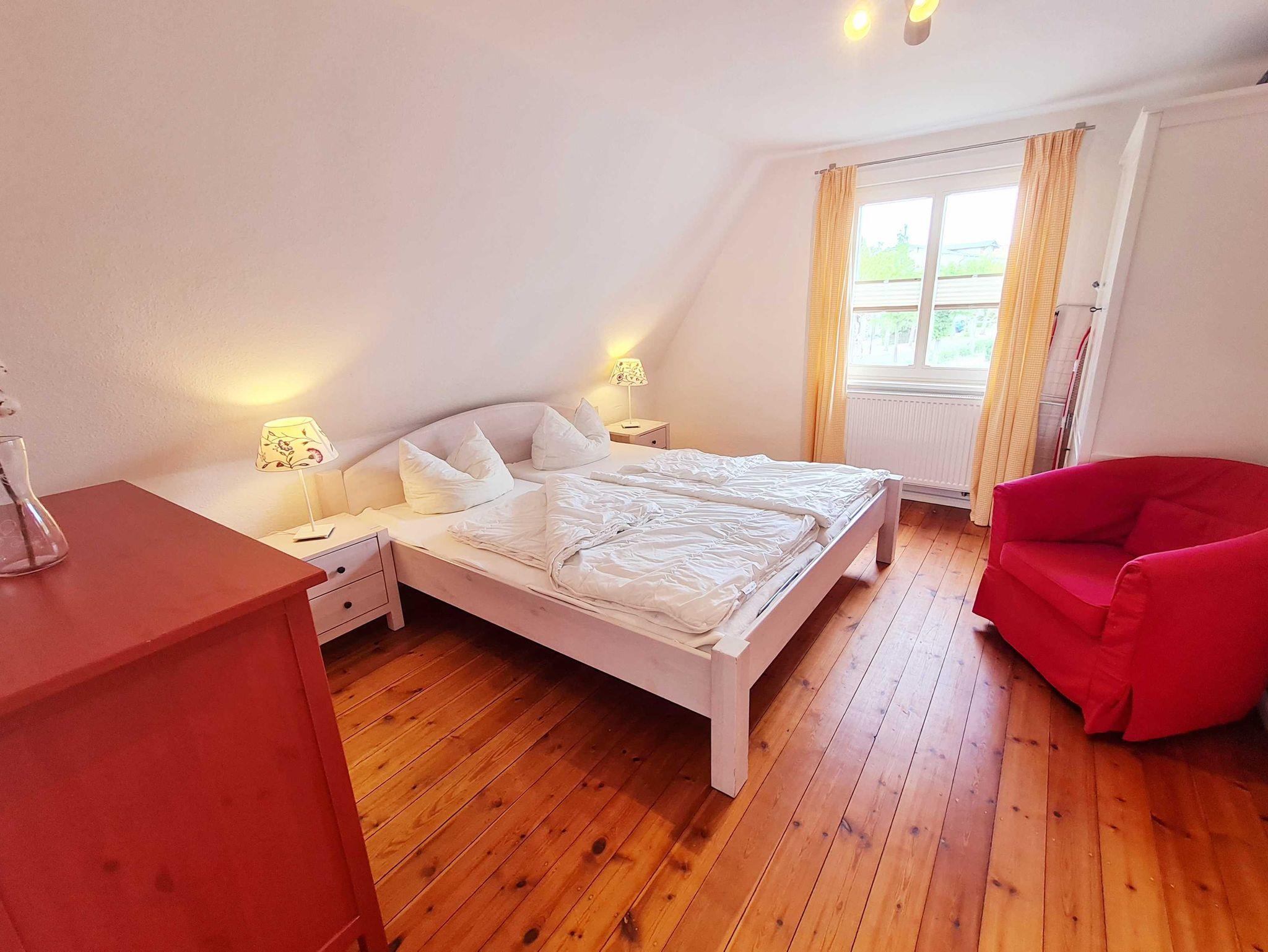 • Schlafzimmer I: Doppelbett mit zwei Einzelmatratzen 90x200 cm, Schrank, Nachttische und Lampen