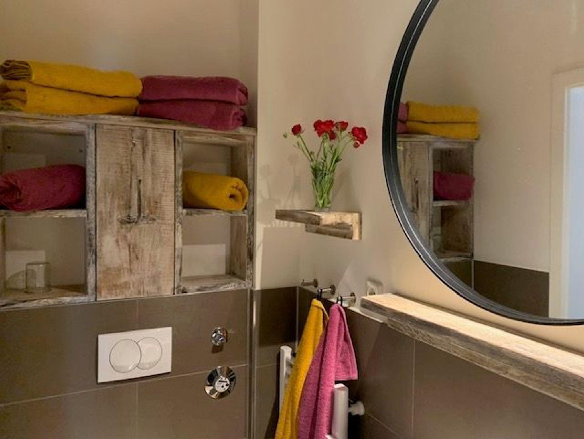 • Bad: Dusche, Waschbecken, Toilette, Spiegel, Schrank, Fön