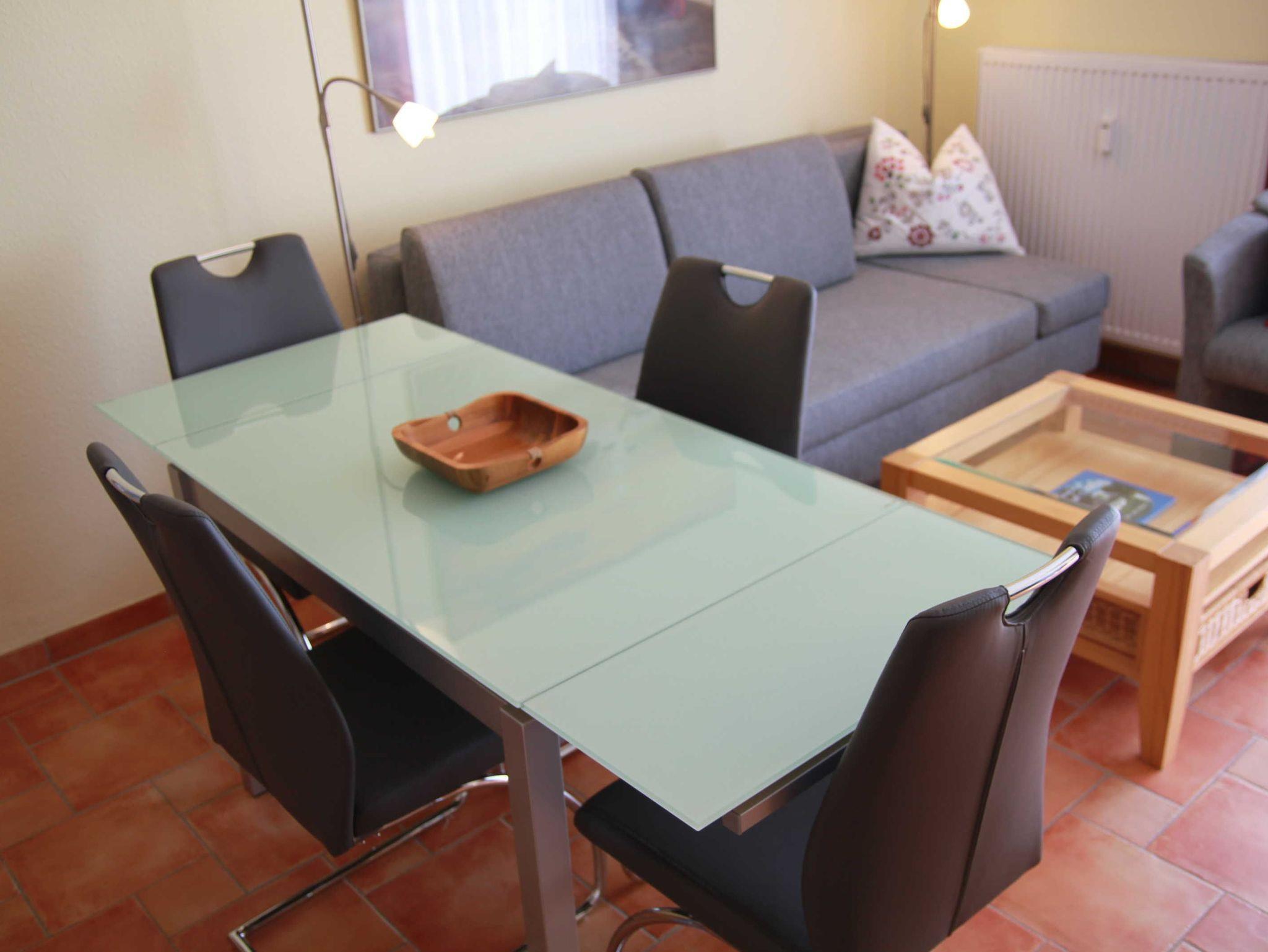 Nur 350m vom Strand entfernt liegt diese gemütlich und modern eingerichtete Wohnung im 1. Obergeschoss mit ca. 48 m² Wohnfläche und einem 8m² sonnigen Südbalkon. Die sehr familienfreundliche Wohnung kann mit bis zu 4 Personen genutzt werden. Ein separates Schlafzimmer und eine 1,50x2,00 m große Schlafcouch, bieten Platz für 4 Personen. Praktisch erreichbar befindet sich vor dem Objekt ein abschließbarer Außenabstellraum, der Platz für Fahrräder o.ä. bietet. Ein Kinderbett, Kinderhochstuhl und ein Strand Buggy sind ebenfalls vorhanden. Der Wohnung ist der kostenlose Stellplatz 28 zugeordnet. WLAN und eine Waschmaschine steht Ihnen ebenso kostenlos zu Verfügung.