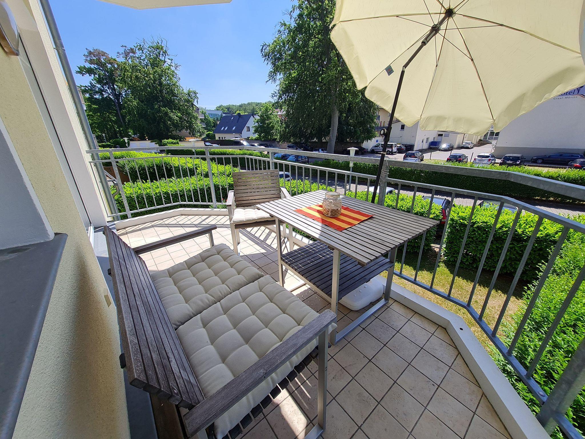 • Balkon: Südausrichtung, Tisch, 2 Stühle, Sonnenschirm