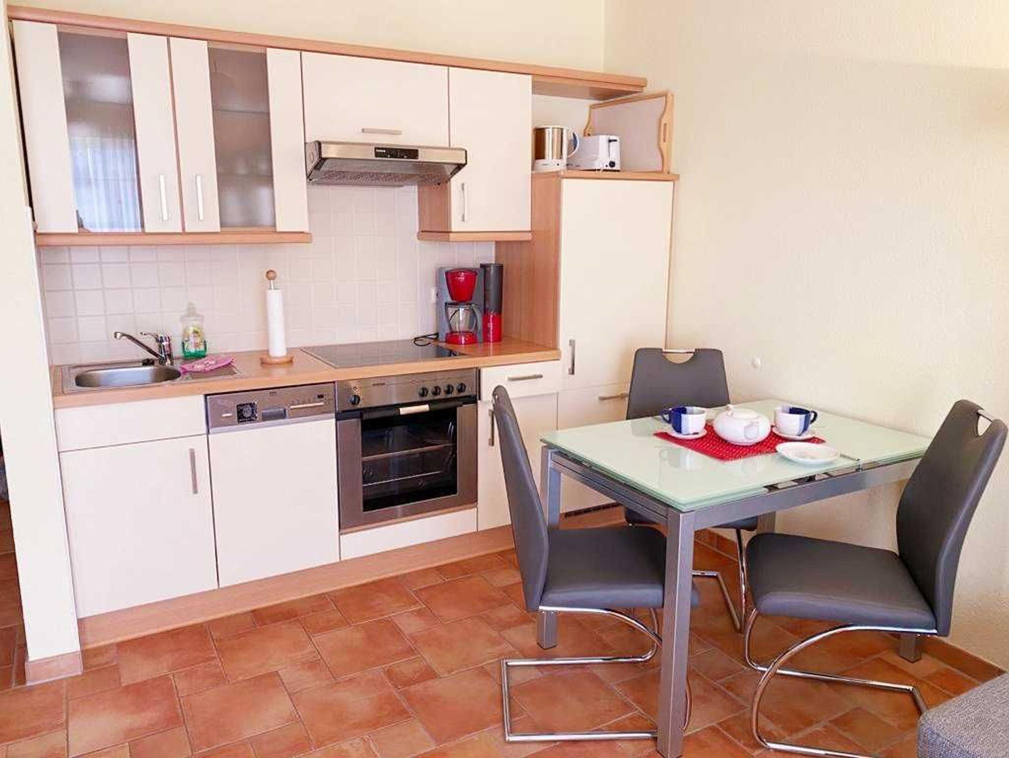 • Küche und Essbereich für 4 Personen offen zum Wohnzimmer, komplett eingerichtete Einbauküche mit Backofen, Ceranfeld, Toaster, Kaffeemaschine, Wasserkocher, Kühlschrank mit Eisfach, Geschirrspüler