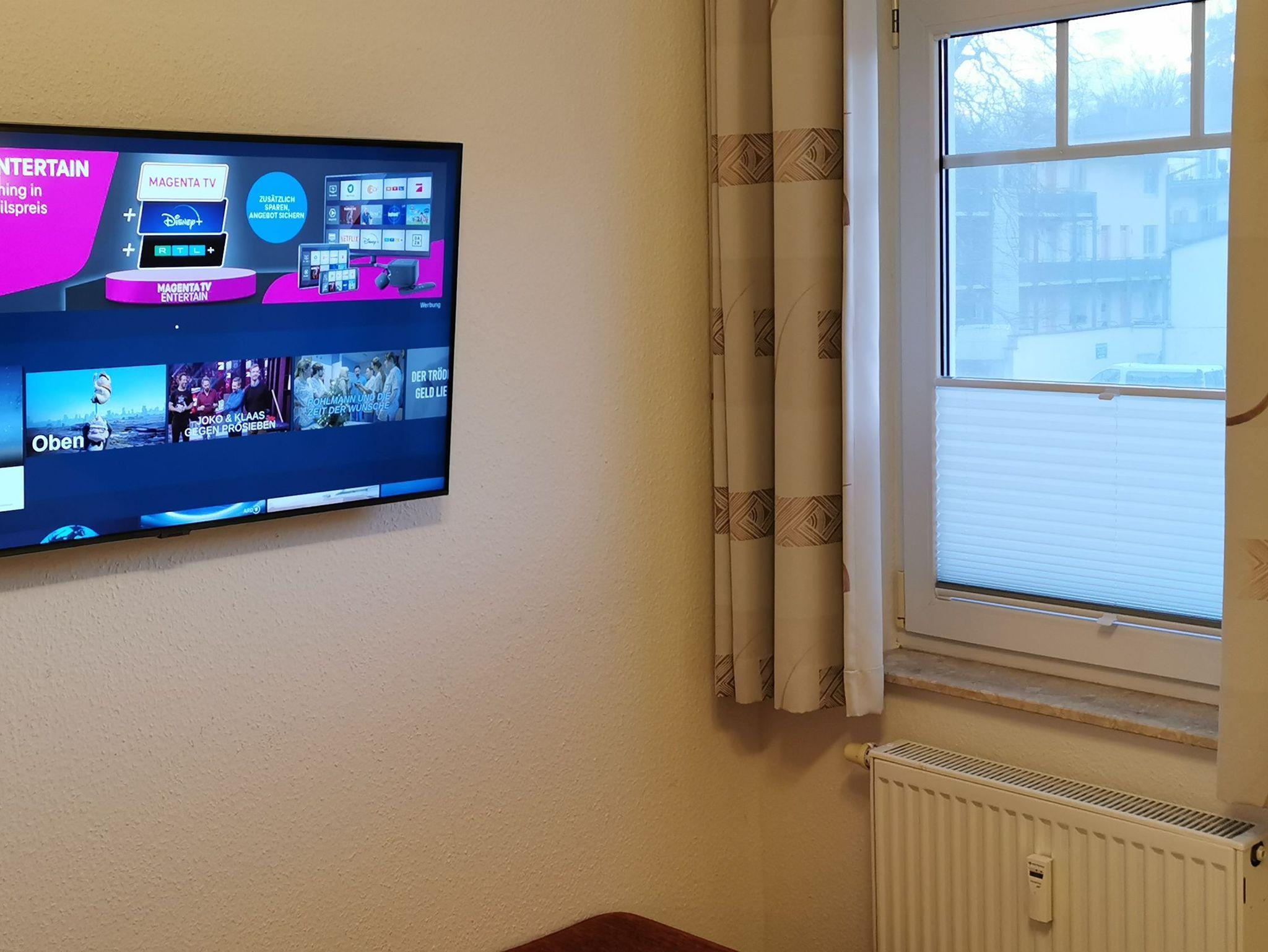 • Schlafzimmer: Doppelbett mit zwei Einzelmatratzen 90x200 m, Schrank, Nachttische, Lampen, 1 Stuhl zur Ablage, Fliegengitter, Plissee, Smart TV für Onlinedienste, mit dem Netflix, Magenta TV, Amazon Prime, usw. verfügbar