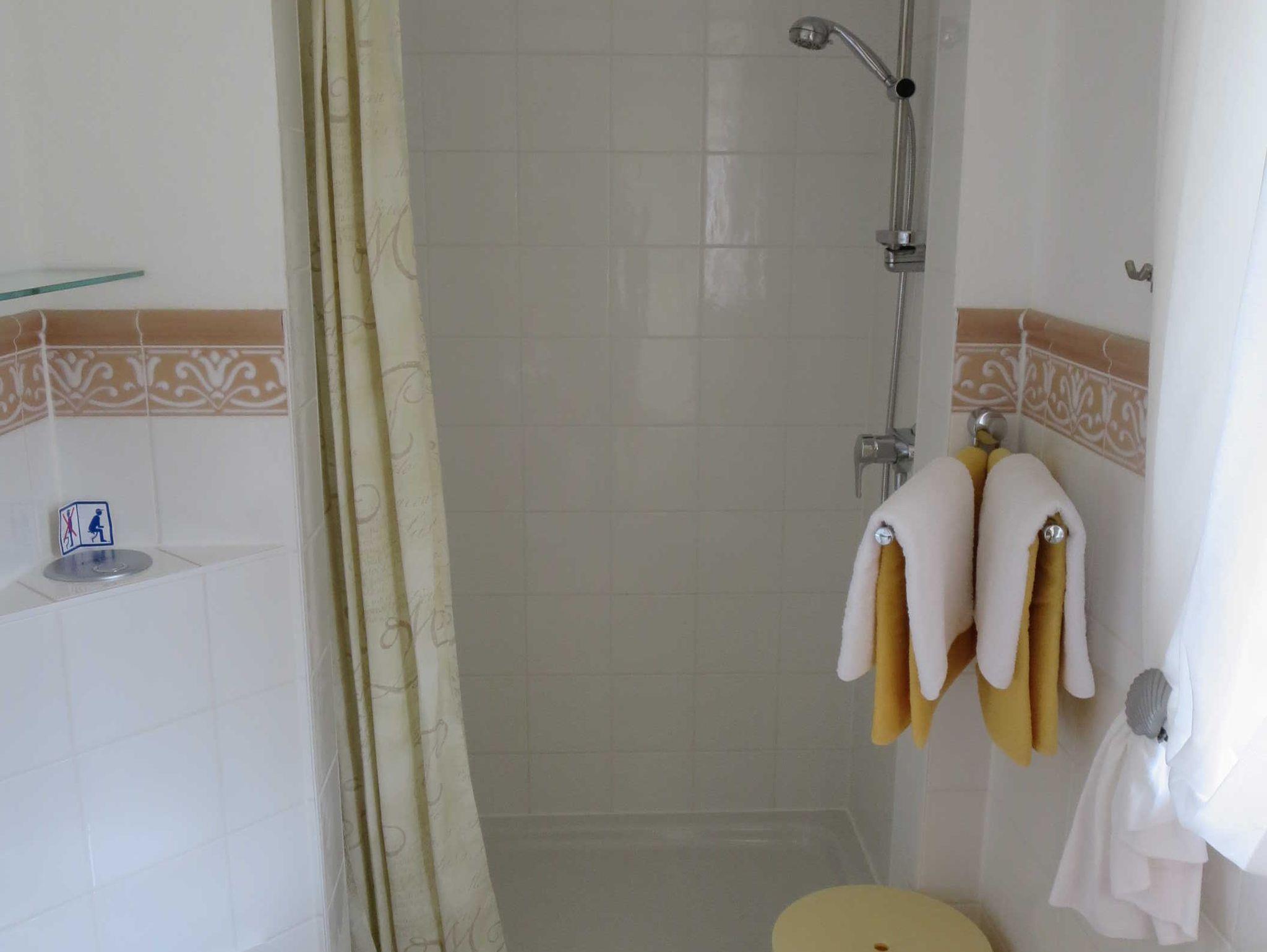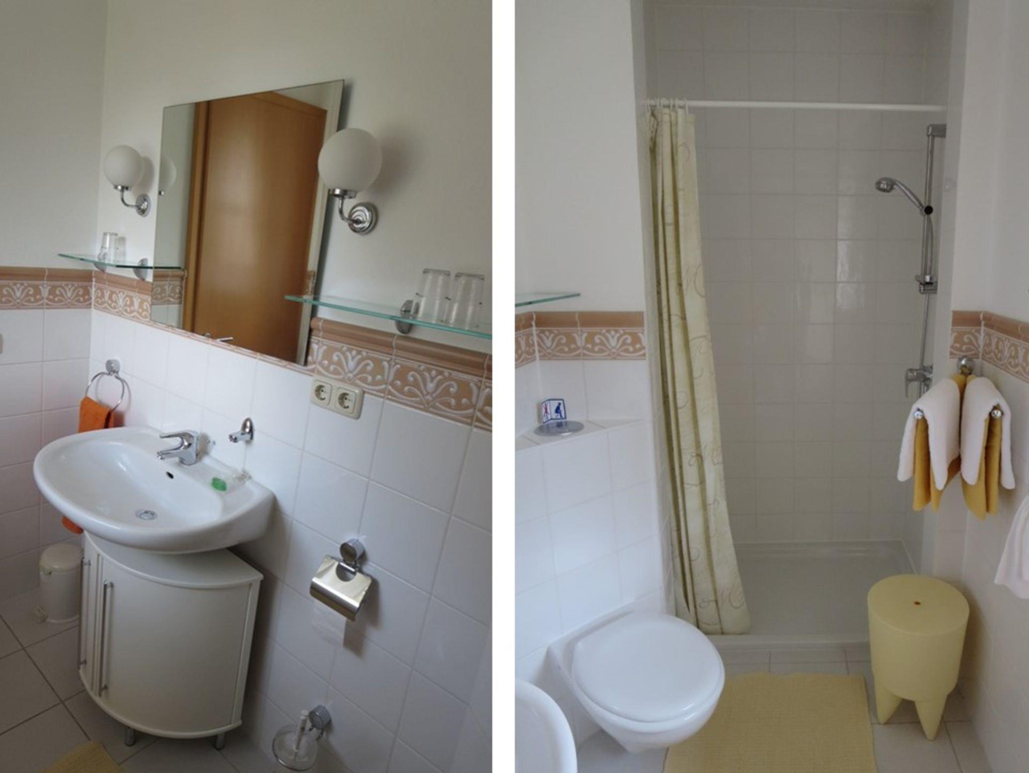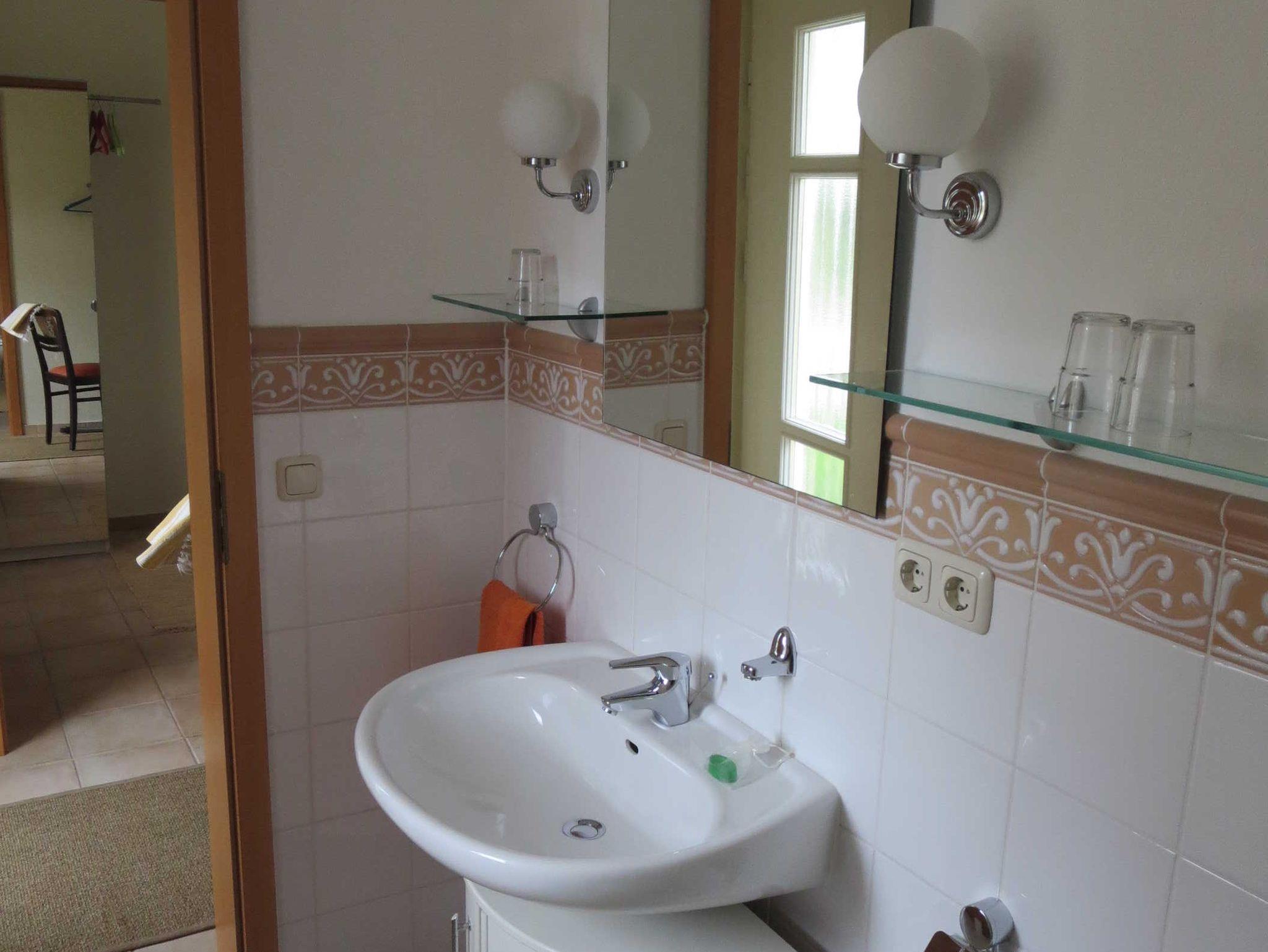 Außer dem geräumigen Duschbad mit Fenster steht dem Gast ein Abstellraum am Carport für Fahrräder und zum Wäschetrocknen zur Verfügung. In dem Abstellraum findet man einen Grill und Relax-Liegen.