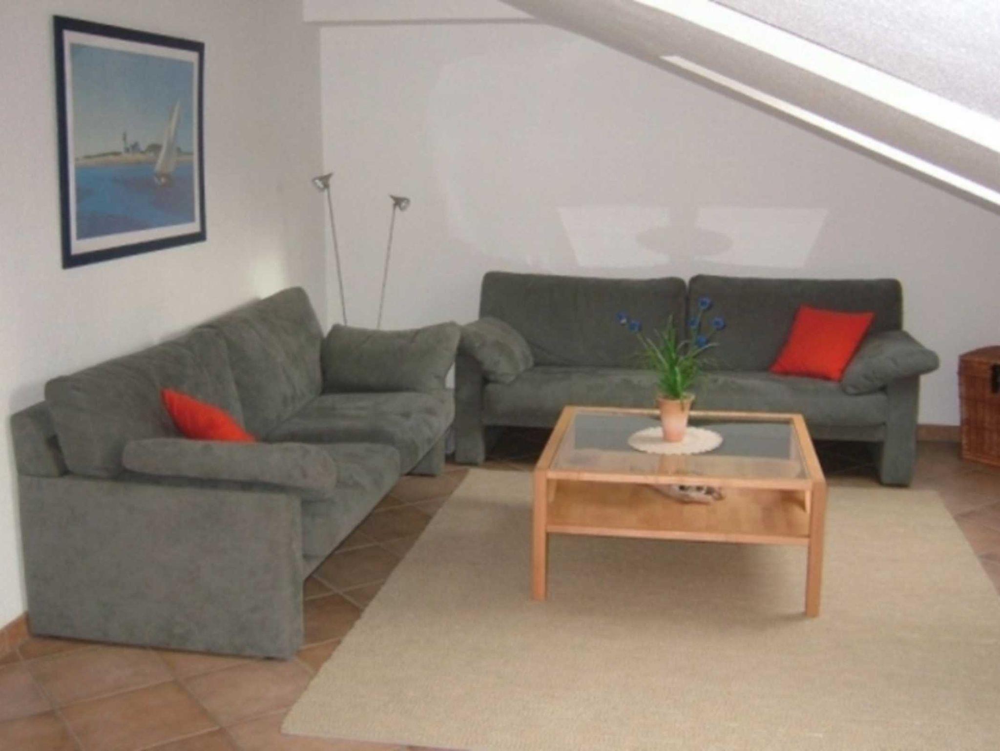 64qm große Fewo in Bäderstilvilla, ruhige Lage, hochwertig ausgestattet, 2 Schlafzimmer (in einem Schlafzimmer steht ein Etagenbett), Südbalkon, 5min zum Strand, Bettwäsche inkl., die Wohnung befindet sich im Dachgeschoß(2.Etage) - Wohnraum offen zur Küche (Wohn- und Schlafraum mit Dachschrägen!) / Parkplatz-Nr. 12