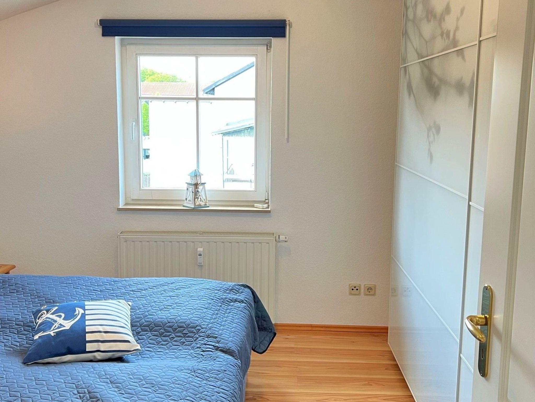 Im Schlafzimmer befindet sich ein Doppelbett mit zwei Matratzen (je 90 cm x 200 cm).