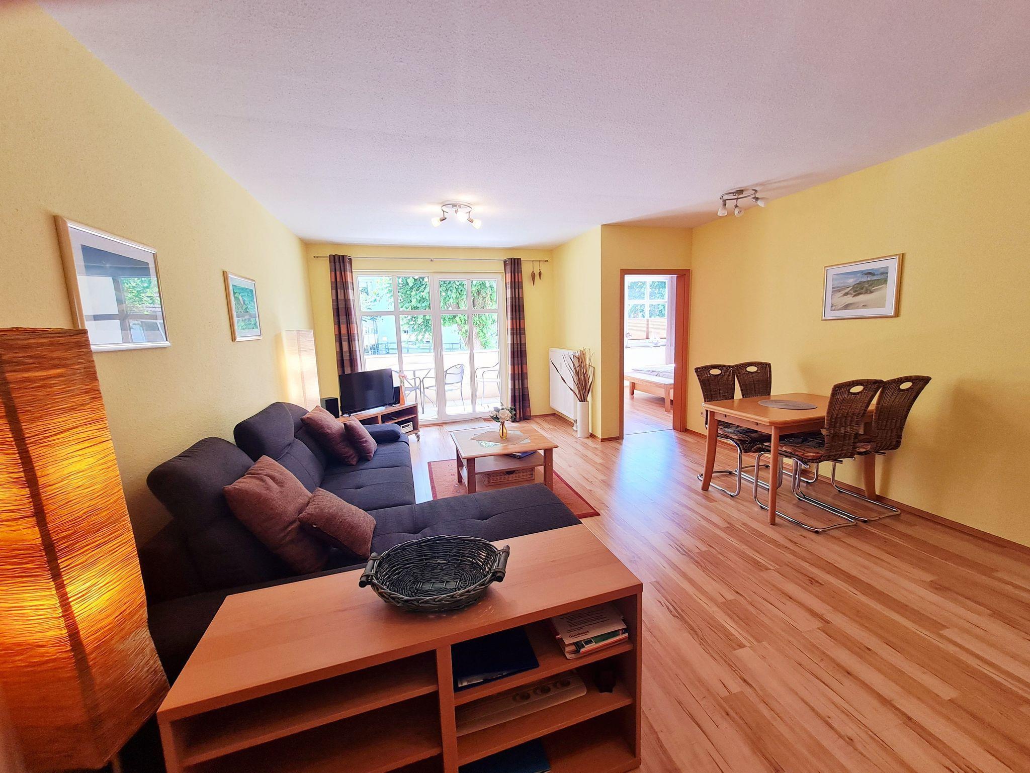 Nur 350m vom Rhododendronpark und 600m vom Strand entfernt liegt diese gemütlich und modern eingerichtete 3-Raumwohnung im Erdgeschoss (Hochpaterre) mit ca. 69 m² Wohnfläche und einem sonnigen Südbalkon. Die sehr freundliche Wohnung kann mit bis zu 4 Personen genutzt werden. Ein separates Schlafzimmer und eine 1,60x2,00 m große Schlafcouch, bieten Platz für 4 Personen. Praktisch erreichbar befindet sich ein Außenabstellraum, der bis zu 4 Fahrrädern Platz bietet. Der Wohnung ist der kostenlose Tiefgaragenstellplatz Nr. 2 zugeordnet. Kostenloses WLAN steht Ihnen hier ebenso zur Verfügung.