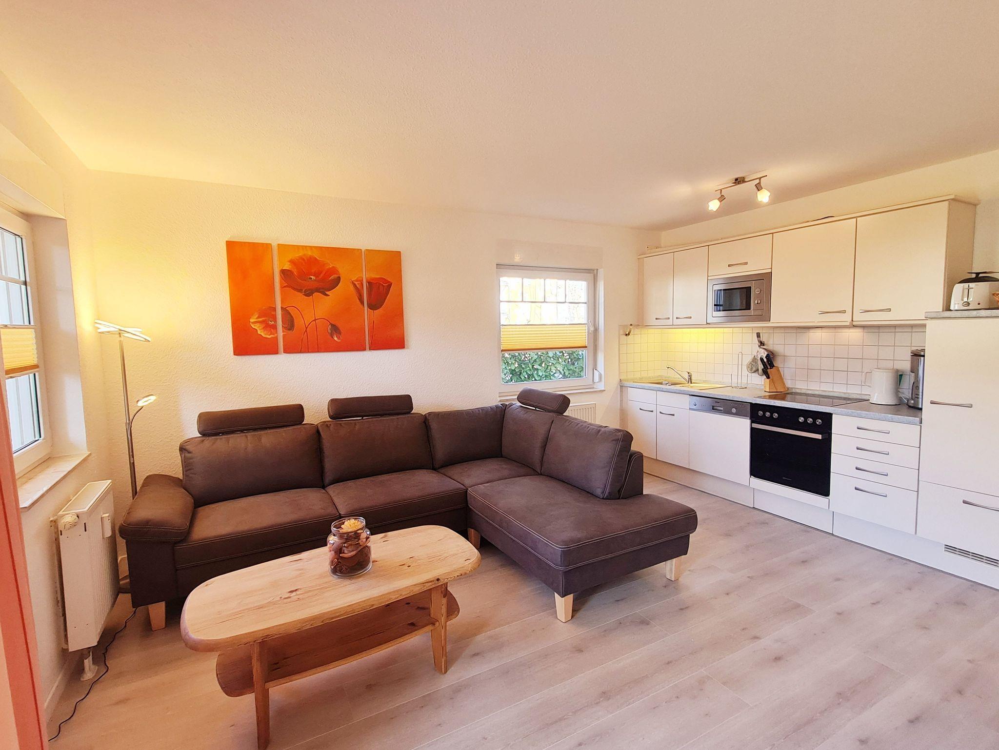 Nur 350m vom Strand entfernt liegt diese gemütlich und modern eingerichtete 3-Raum-Wohnung im Erdgeschoss mit ca. 63 m² Wohnfläche und einer sonnigen Südterrasse. Die sehr familienfreundliche Wohnung kann mit bis zu 5 Personen (+ 1 Kleinkind auf Anfrage) genutzt werden. Zwei separate Schlafzimmer bieten Platz für 5 Personen. Praktisch erreichbar befindet sich vor dem Objekt ein abschließbarer Außenabstellraum, der Platz für Fahrrädern o.ä. bietet. Der Wohnung ist ein kostenloser Stellplatz Nr.26 zugeordnet. WLAN steht Ihnen kostenlos zu Verfügung.