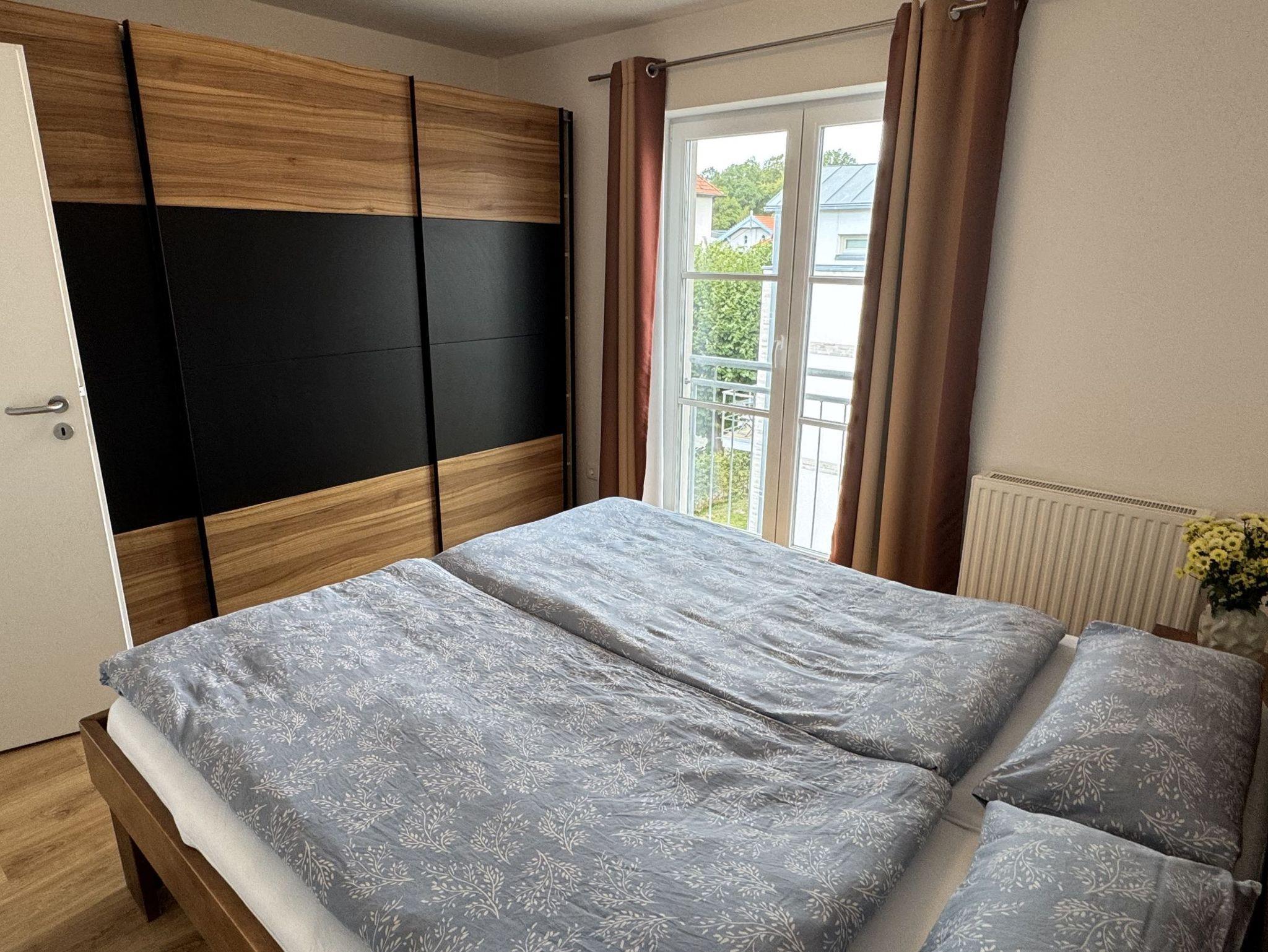 - Im Elternschlafzimmer sorgen ein hochwertiges Doppelbett aus Massivholz und ein großzügiger Schwebetürenschrank für erholsame Nächte und viel Stauraum.