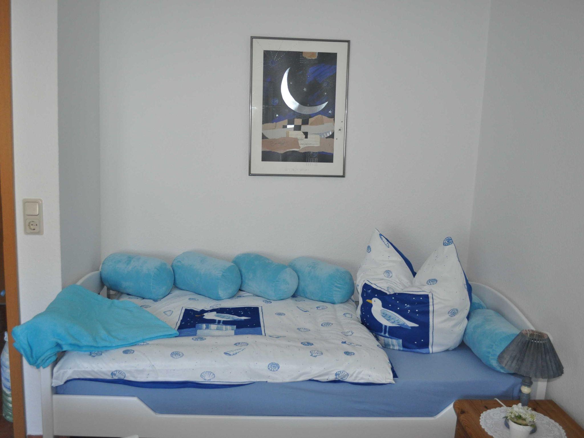 Die 50 Quadratmeter große Ferienwohnung Möwennest liegt im ersten Stock mit Süd / West - Balkon. Diese gemütliche, mit Liebe zum Detail eingerichtete Ferienwohnung, bietet Platz für 2 Erwachsene und 1Kind. Einkaufsmöglichkeiten (Edeka, Penny, Bäcker etc.) und Apotheke liegen in unmittelbarer Nähe. PKW Stellplatz (Nr. 9) und abschließbarer Fahrradunterstand mit Wäschetrockenraum sind vorhanden.