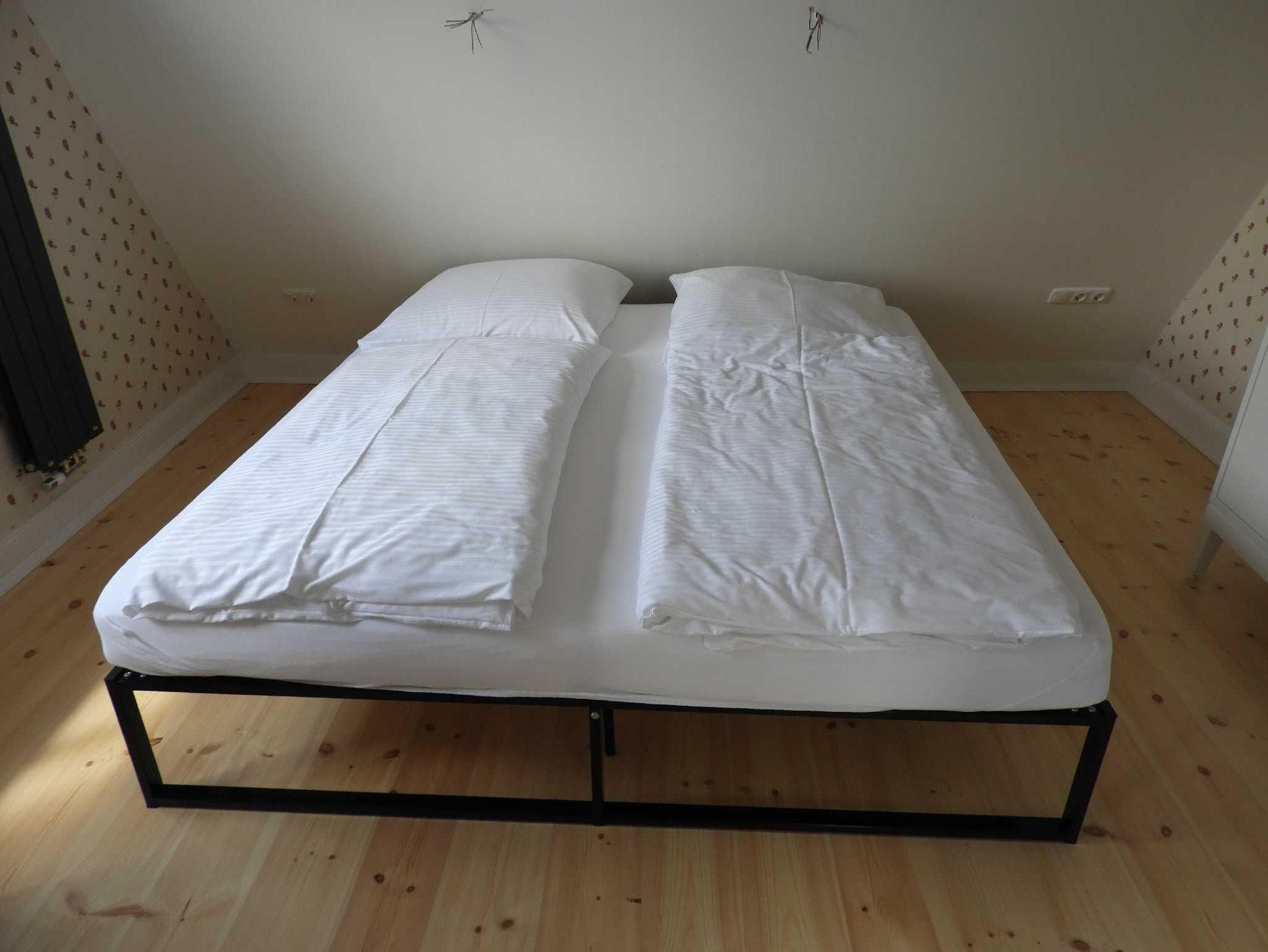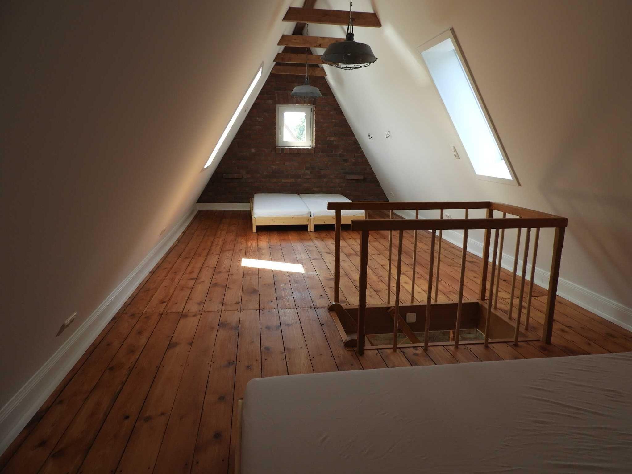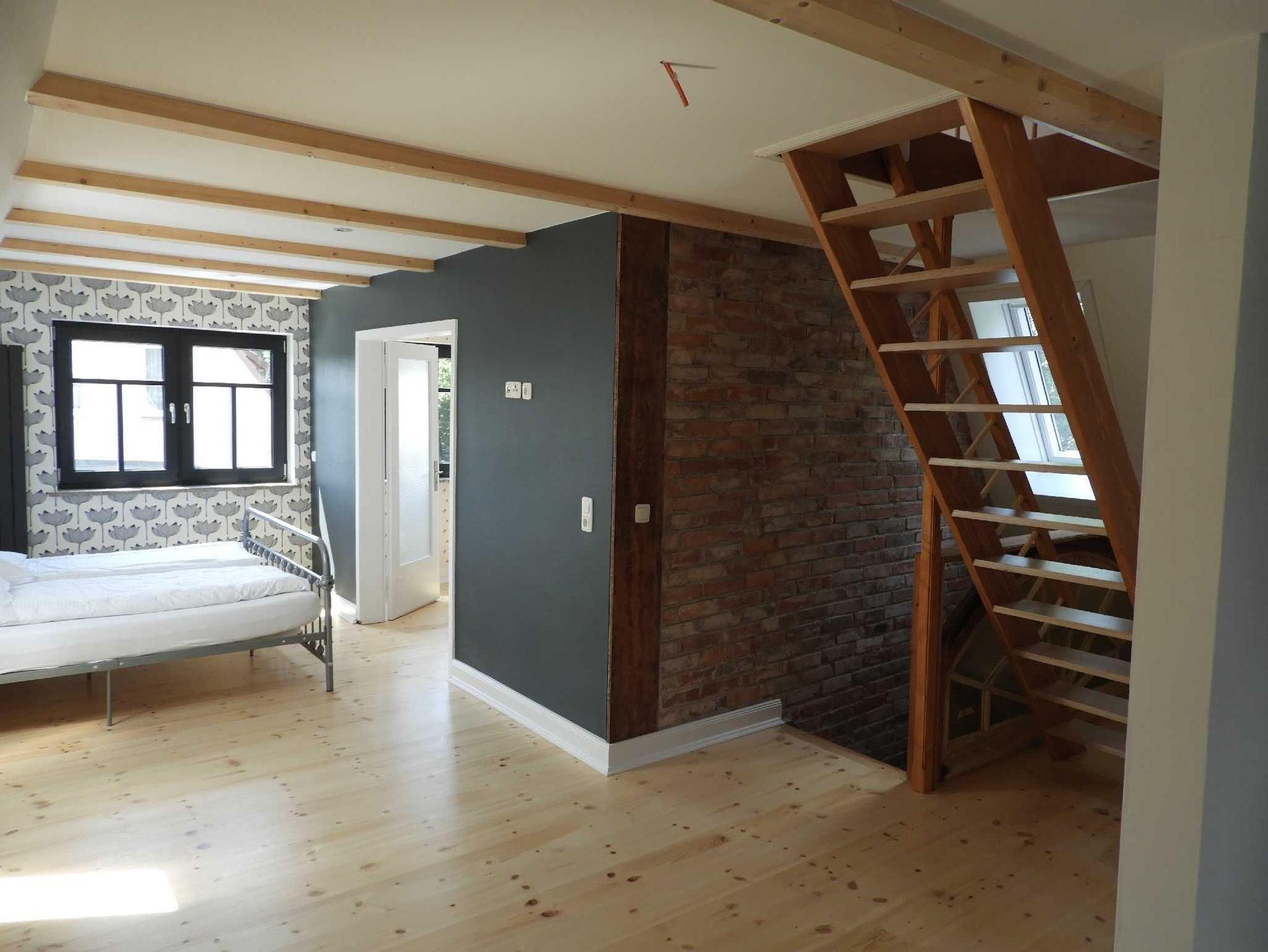 Das Ferienhaus ist aufgeteilt in zwei Schlafzimmer mit jeweils einem Doppelbett sowie einem Schlafbereich im offenen Bereich im 1. OG mit einem Doppelbett und vier einzelne Schlafmöglichkeiten auf dem Schlafboden. Es gibt neben einem großzügigen Wohn- und Küchenbereich ein Gäste-WC, ein Badzimmer im Erdgeschoss mit Badewanne, Dusche und WC sowie im Obergeschoss ein weiters Badezimmer mit Dusche und WC.