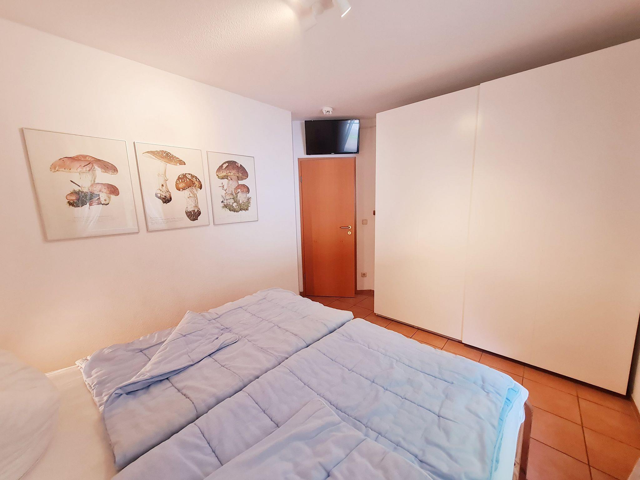 • Schlafzimmer: Doppelbett mit zwei hochwertigen, sehr bequemen Einzelmatratzen (90x200cm), geräumiger Schrank, Nachttische mit Leselampen, SAT-TV
