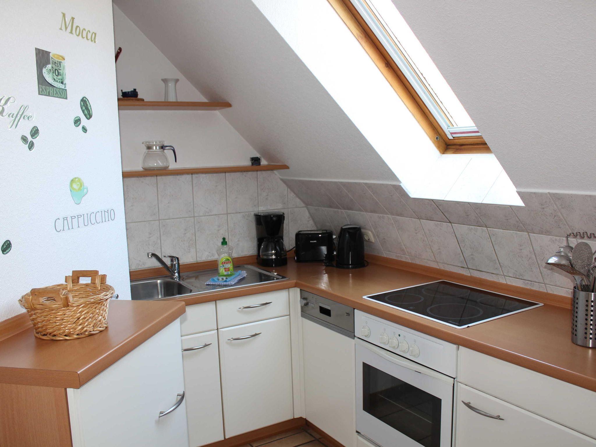 • moderne Einbauküche mit Geschirrspüler, Backofen und Kochfeld, Kühlschrank mit Gefrierfach, usw.
