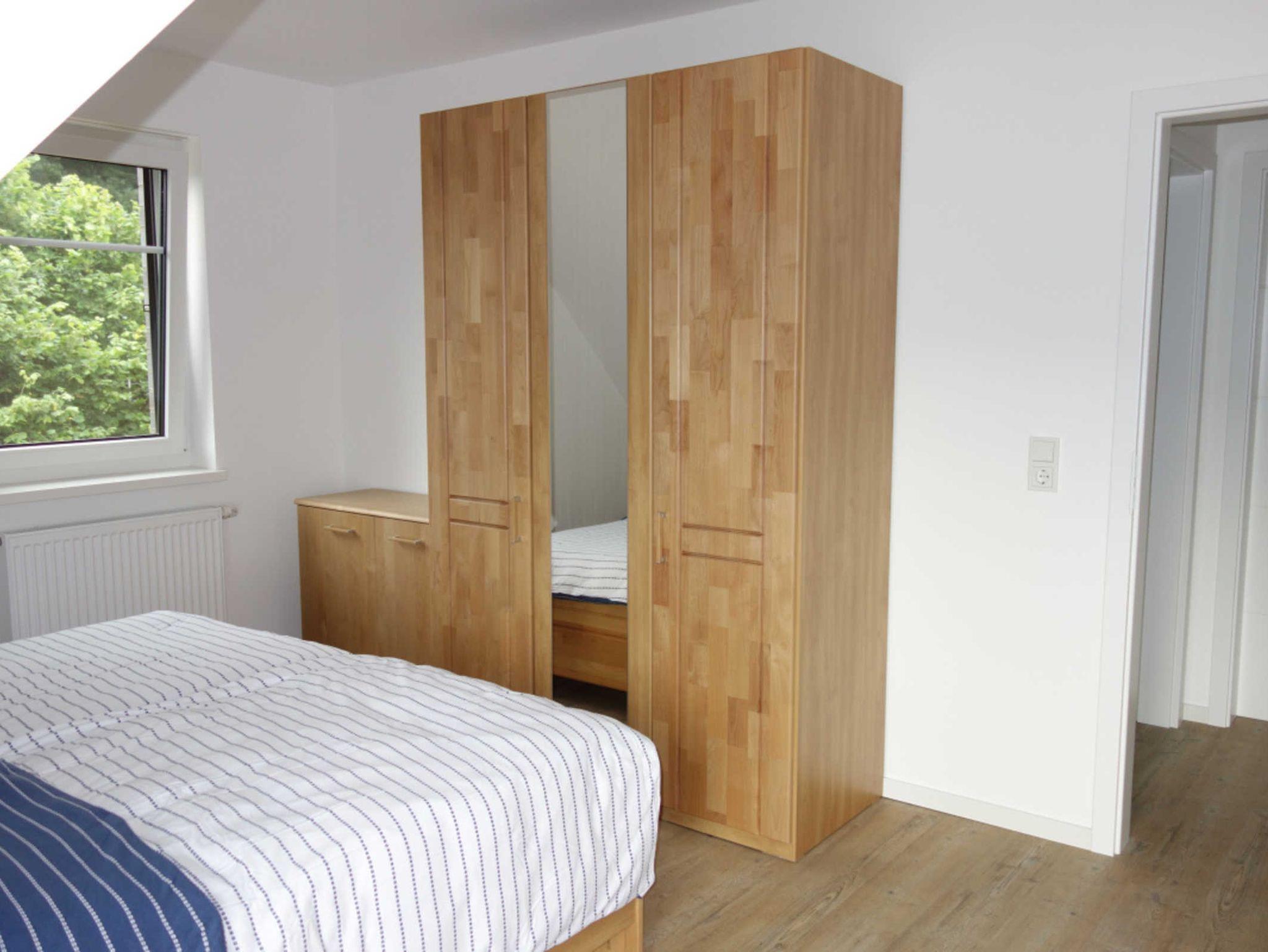Eines der beiden Schlafzimmer verfügt über ein Doppelbett, das andere über zwei Einzelbetten. In einem Schlafzimmer ist eine kleine Leseecke mit Stuhl und bodentiefem Fenster. In dem 2.Schlafzimmer steht zusätzlich ein Flachbildfernseher.