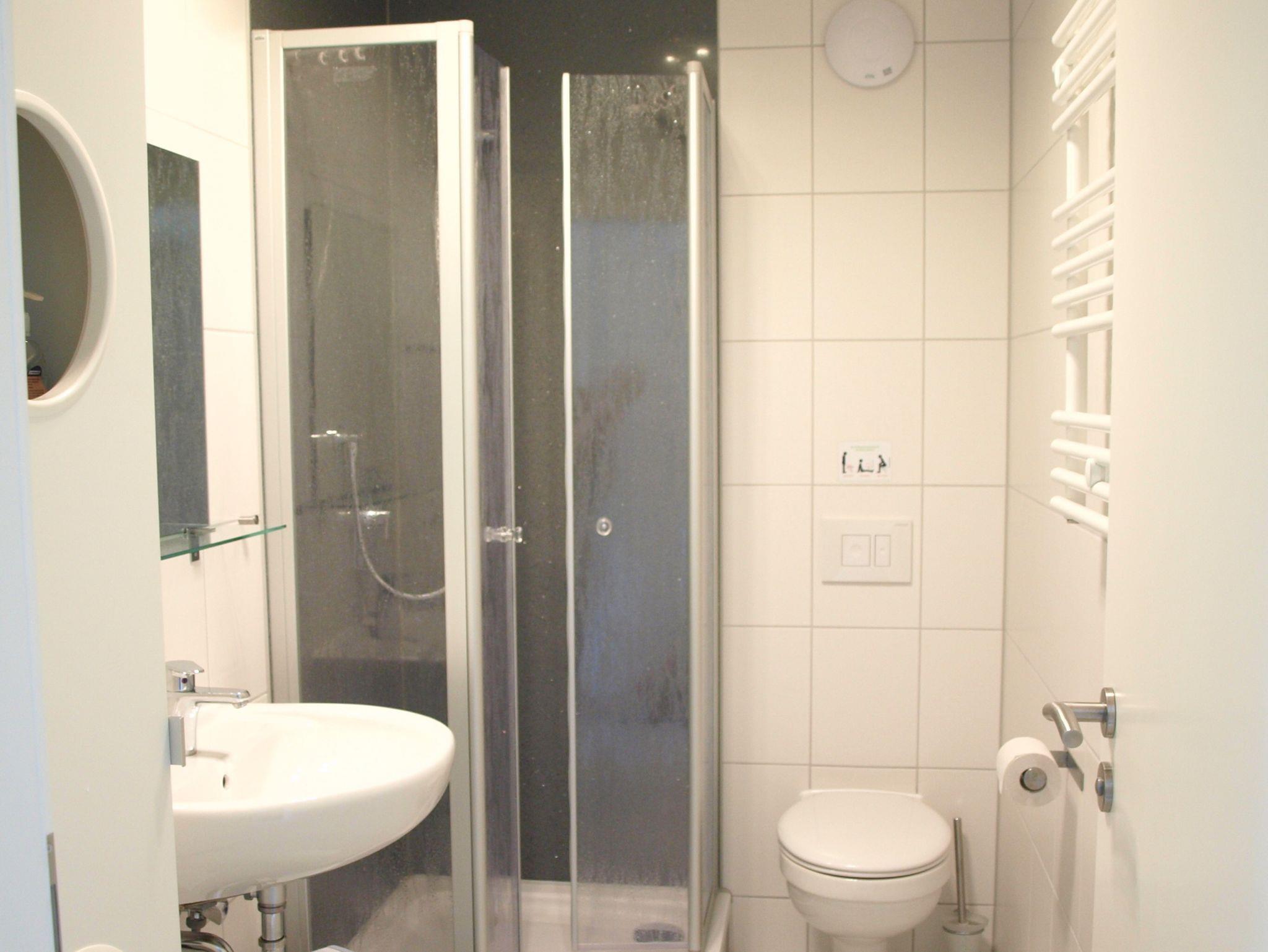 Die Ferienwohnung im Obergeschoss besteht aus einem Wohn-/Essbereich mit Balkon sowie einer modernen Küchenzeile. Das separate Schlafzimmer bietet ein großes Doppelbett sowie einen großen Kleiderschrank.