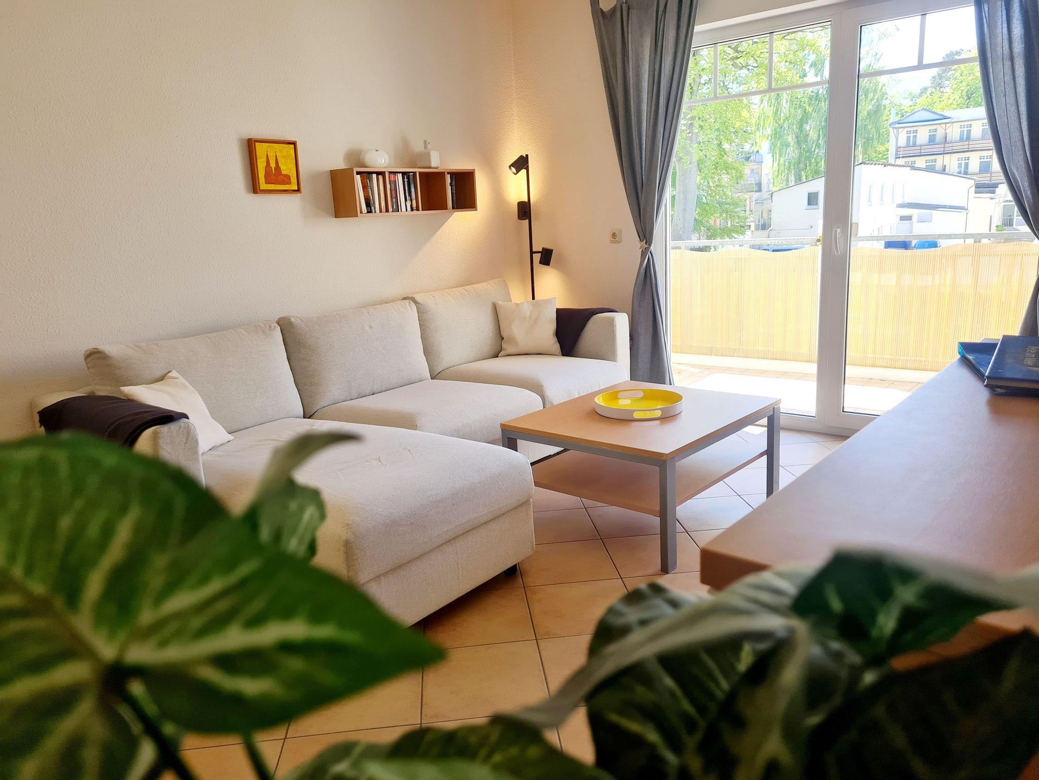 Nur 350m vom Strand entfernt liegt diese gemütlich und modern eingerichtete 2-Raum-Wohnung im 1. Obergeschoss mit ca. 48 m² Wohnfläche einem sonnigen Südbalkon. Die sehr helle und freundliche Wohnung kann mit bis zu 3 Personen genutzt werden. Ein separates Schlafzimmer und eine 1,30x2,00 m große Schlafcouch, bieten Platz für 3 Personen. Praktisch erreichbar befindet sich vor dem Objekt ein abschließbarer Außenabstellraum, der Platz für Fahrrädern o.ä. bietet. Der Wohnung ist ein kostenloser Stellplatz Nr. 27 zugeordnet. WLAN steht Ihnen kostenlos zu Verfügung.
