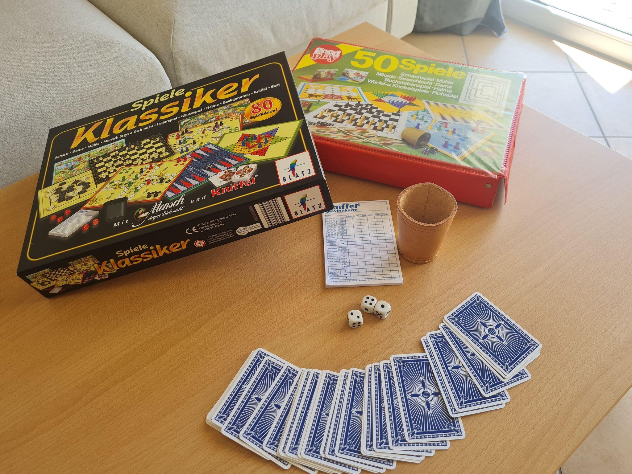 • Wohnzimmer: gemütliche 2-Sitzer Schlafcouch Textil 130 x 200 m, TV-Flachbild, 1 Sessel, Hocker, Tisch, Wohnwand, Bücher, Spiele, Mini Anlage mit CD-Radio, Stehlampe