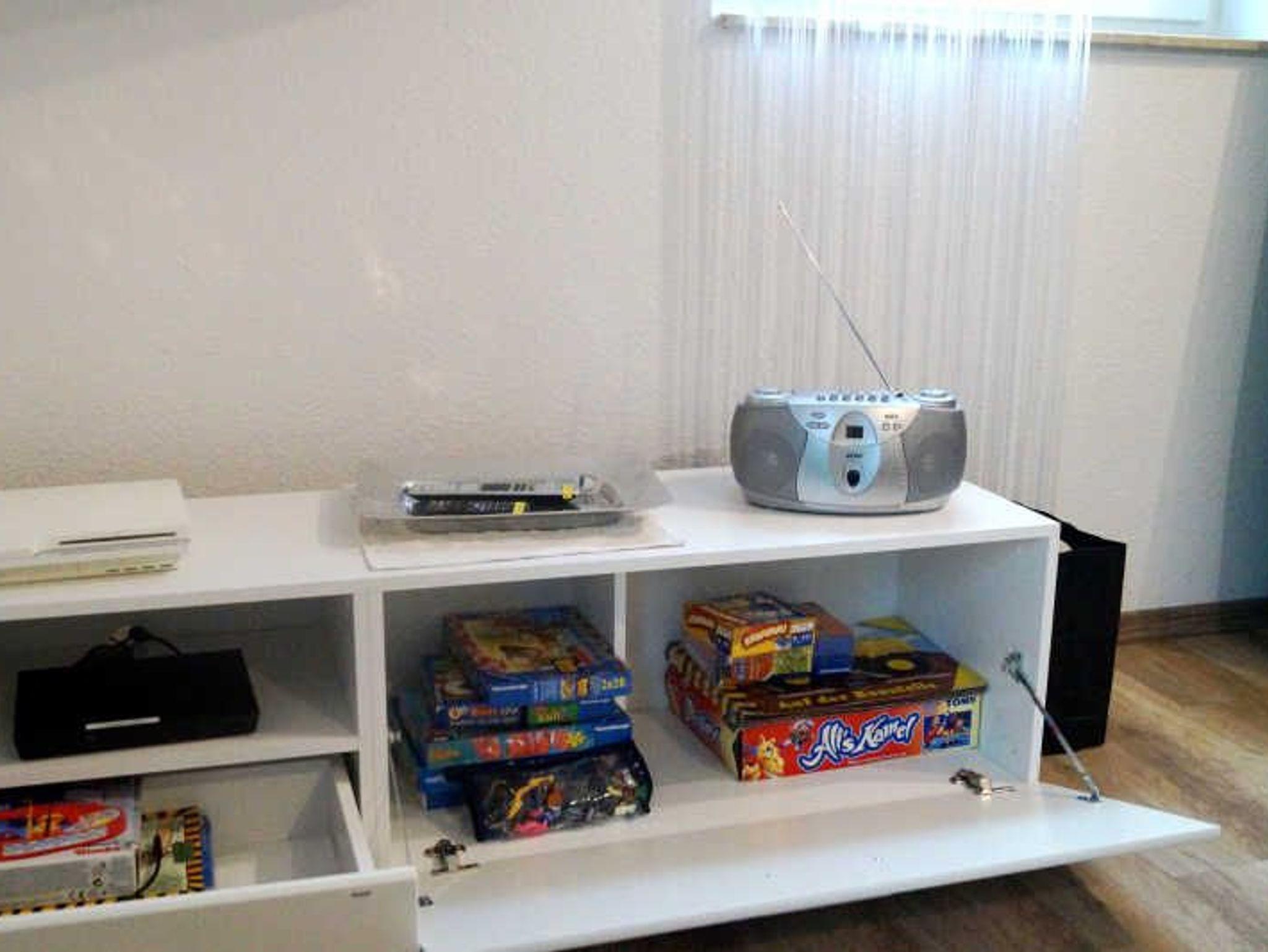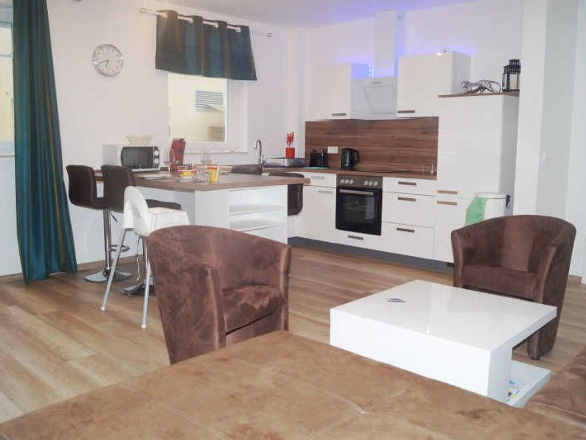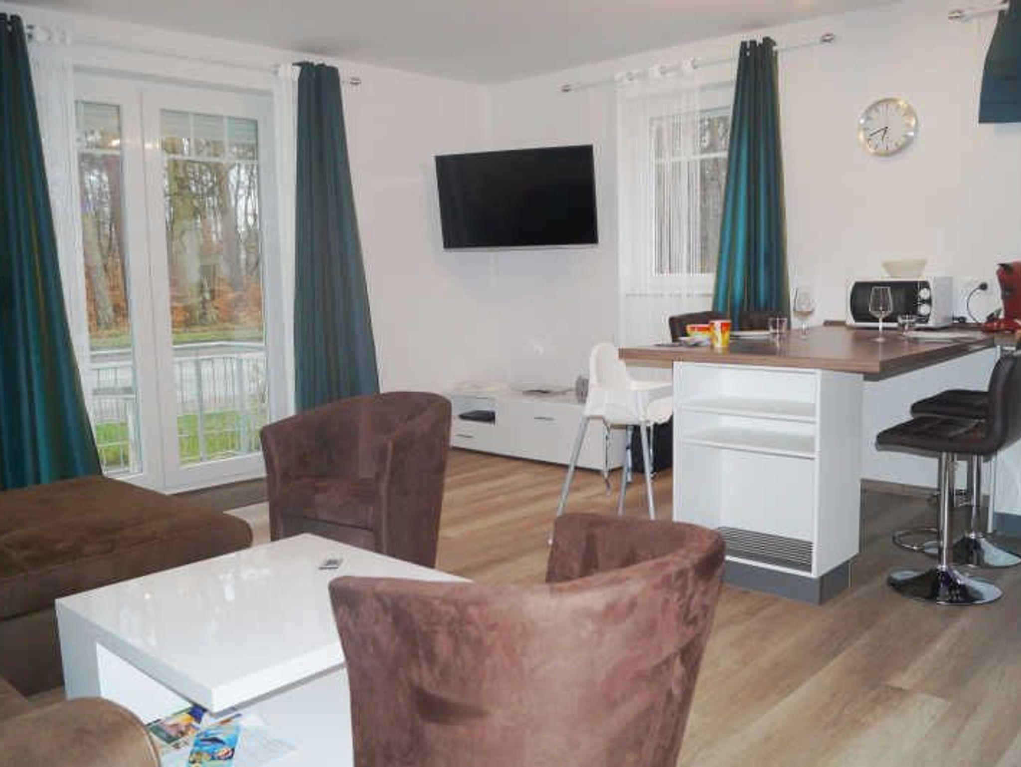 Ihre Ferienwohnung ist etwa 60 qm groß und für bis zu 4 Personen geeignet. Das Wohnzimmer ist mit einer Schlafcouch sowie einem Fernseher, Blu Ray / DVD-Player plus diverse DVDs und einem Radio mit CD-Player ausgestattet.